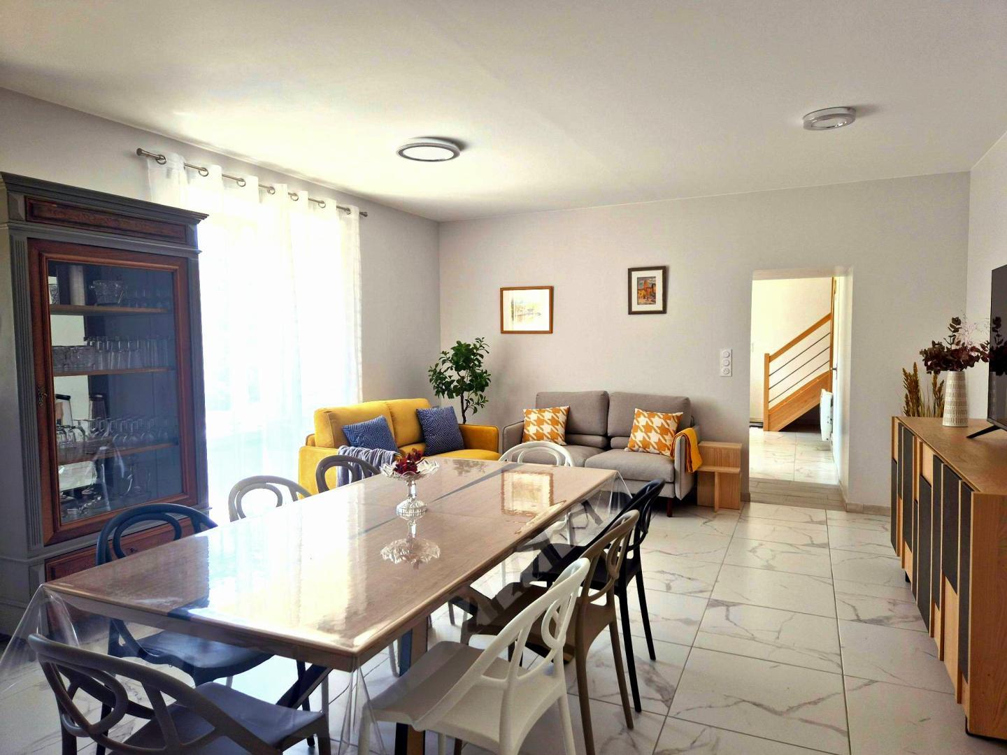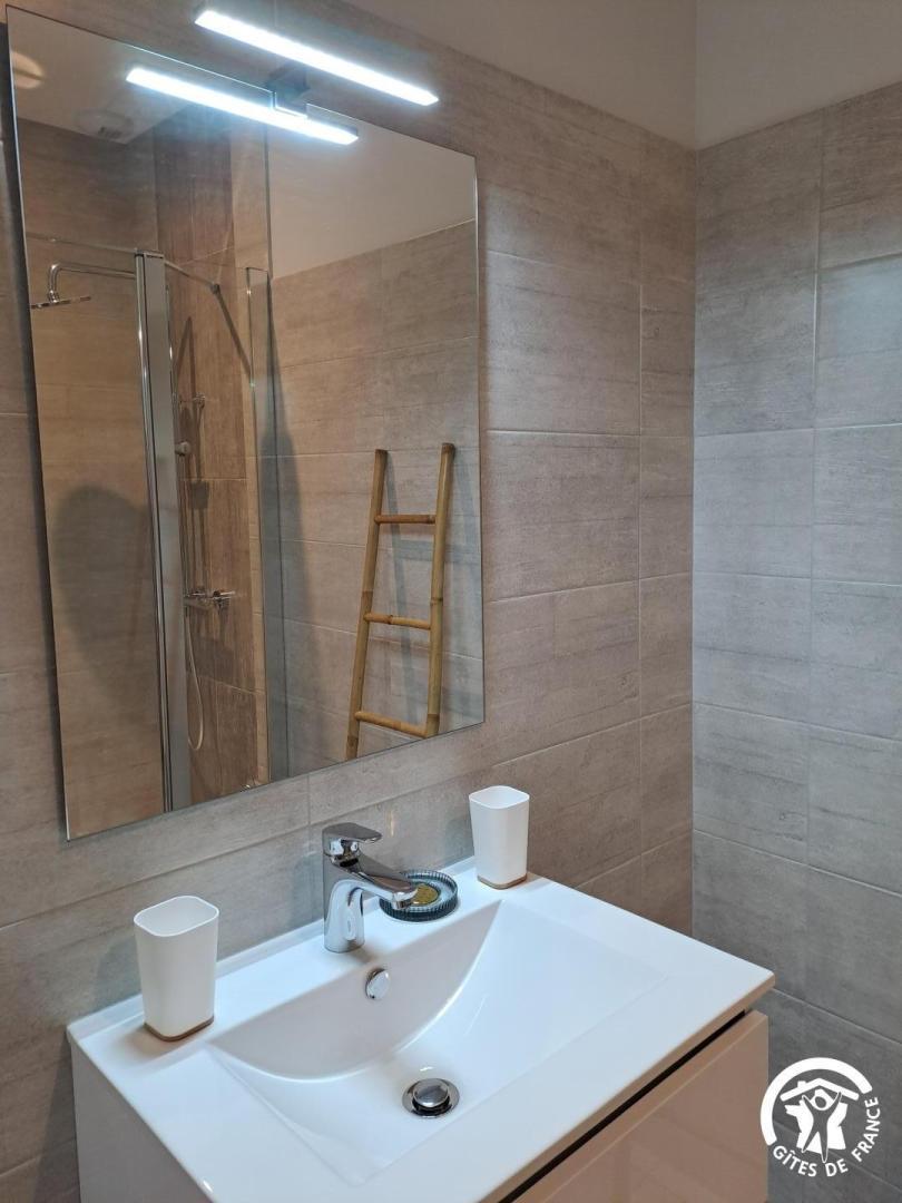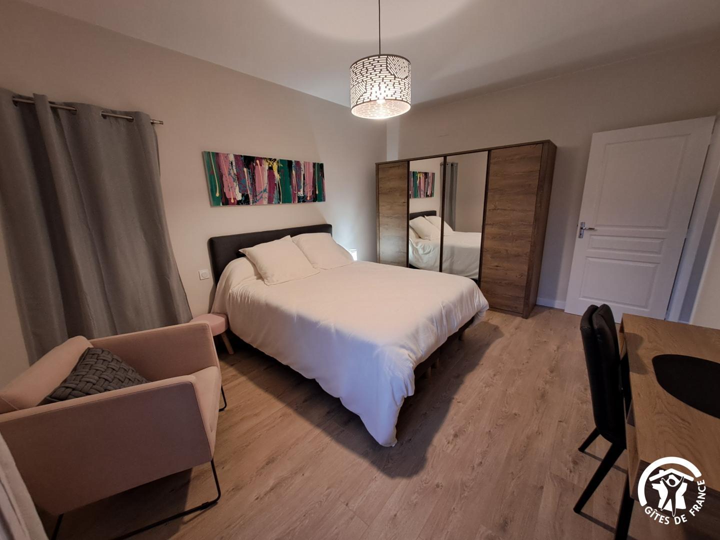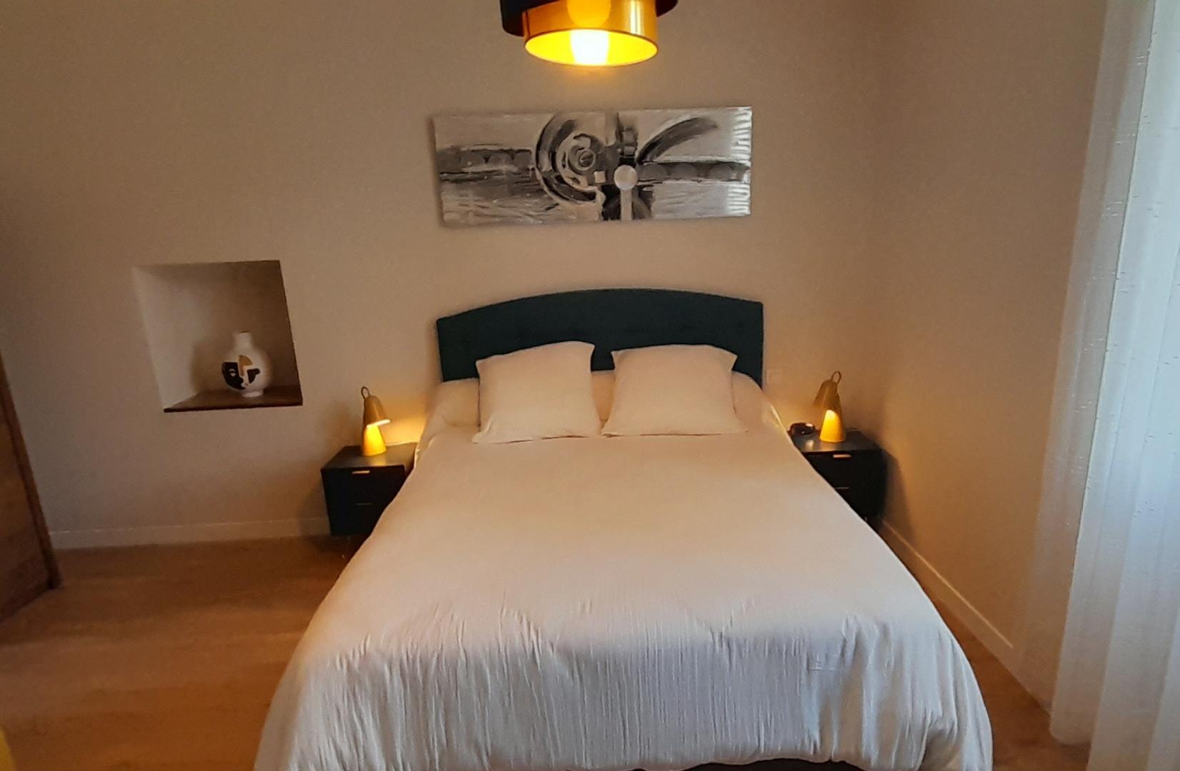Au rez-de-chaussée, l’espace de vie est conçu pour la convivialité : une cuisine entièrement équipée et lumineuse, un salon confortable avec télévision, et un espace salle à manger avec une grande table pour partager de bons moments. Ce niveau comprend aussi une chambre avec un lit 160×200, disposant d’un coin salle d’eau. Et WC indépendant.