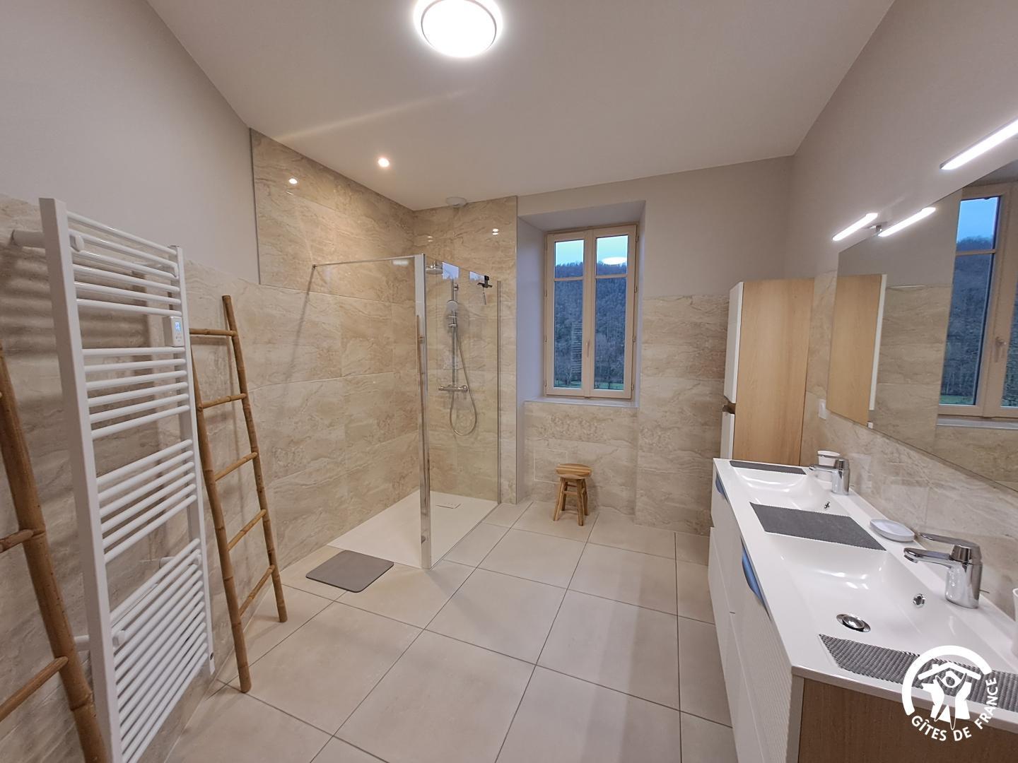 – Depuis la pièce de vie, un second escalier conduit à deux chambres avec lits 160×200, une grande salle d’eau et un WC indépendant.