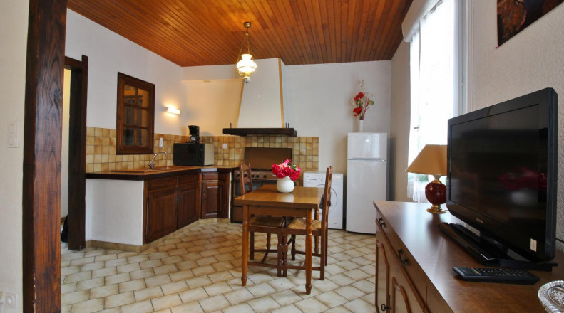 Appartement au RDC. Pièce à vivre: coin salon, repas et cuisine. 1 chambre avec lit 140. Salle d’eau avec douche et wc. WIFI. Jardin commun à d’autres locations saisonnières. Propriétaires proximité. Chauffage en suppl.(relevé compteur). Terrain clos (+de 1200m2). Parking. Boulodrome public à proximité. .