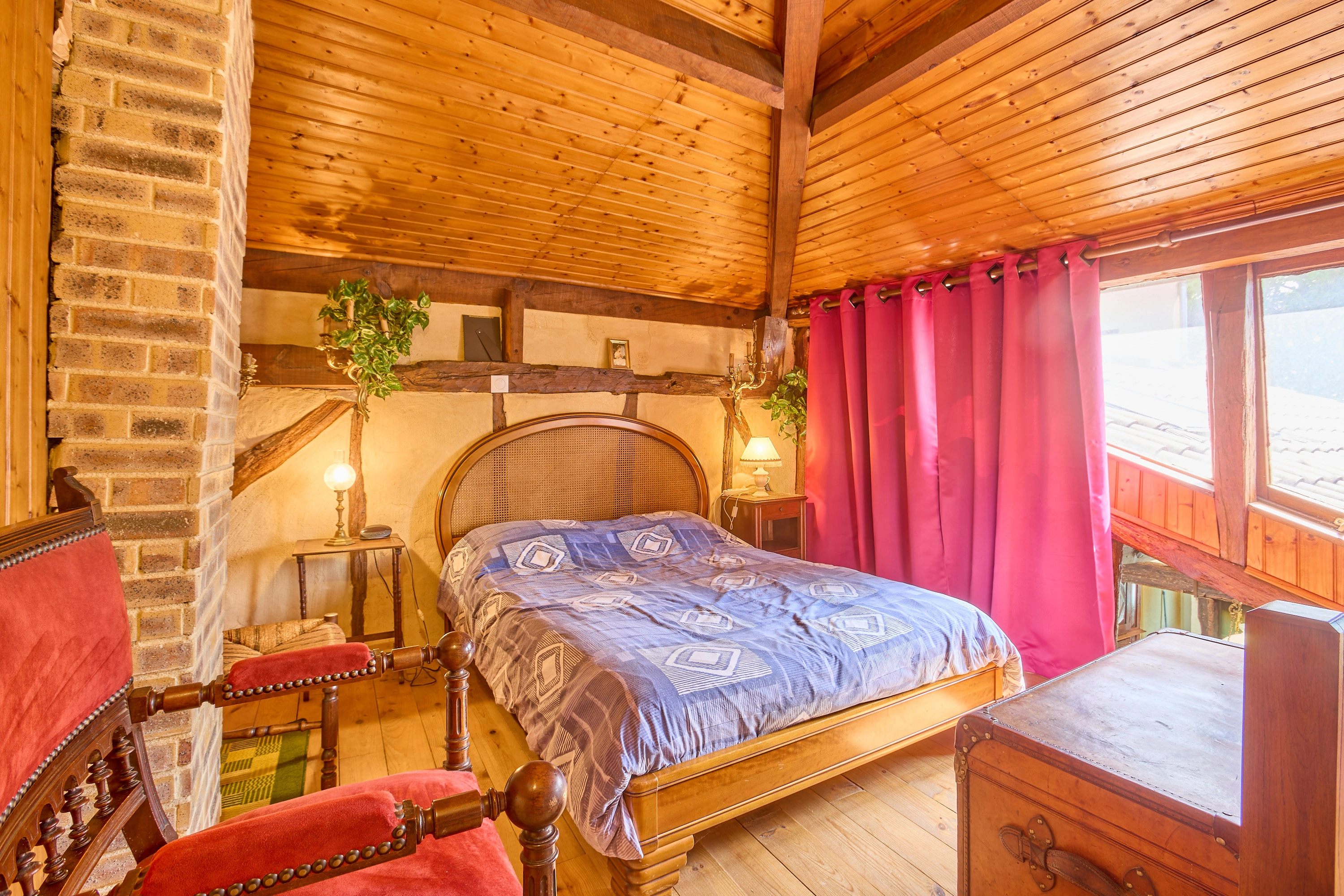 À l’étage, une mezzanine aménagée en chambre vient compléter l’ensemble, apportant un espace nuit supplémentaire dans un esprit cocooning.