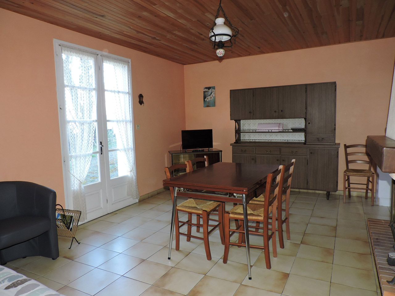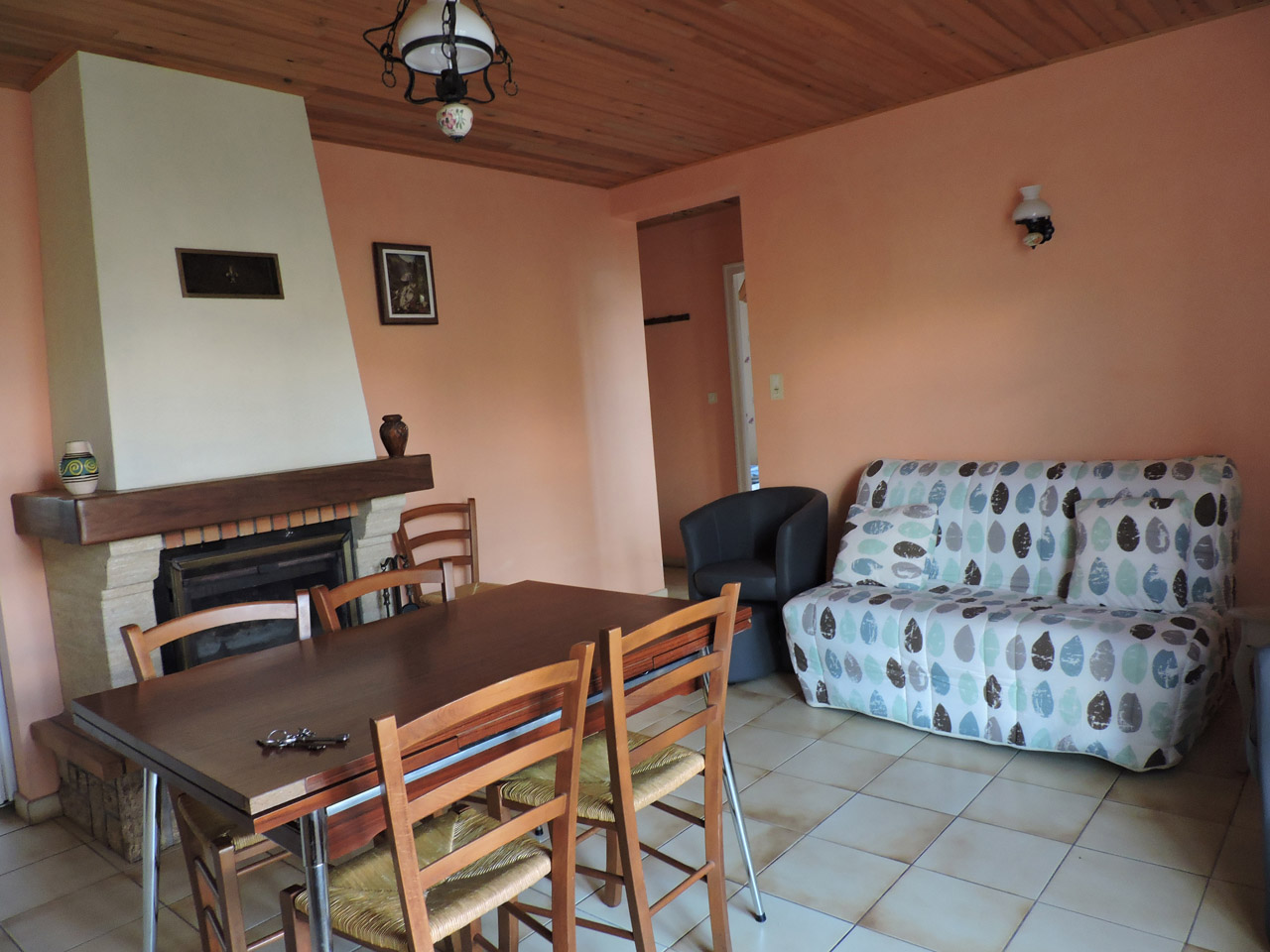 Habitation de 60m² comprenant : Un séjour avec coin cuisine, canapé, 2 chambres (2 lits en 140 et 1 lit en 90), salle d’eau (douche) et WC indépendant. La location bénéficie d’un jardin clos et d’un parking privatif dans la cour.