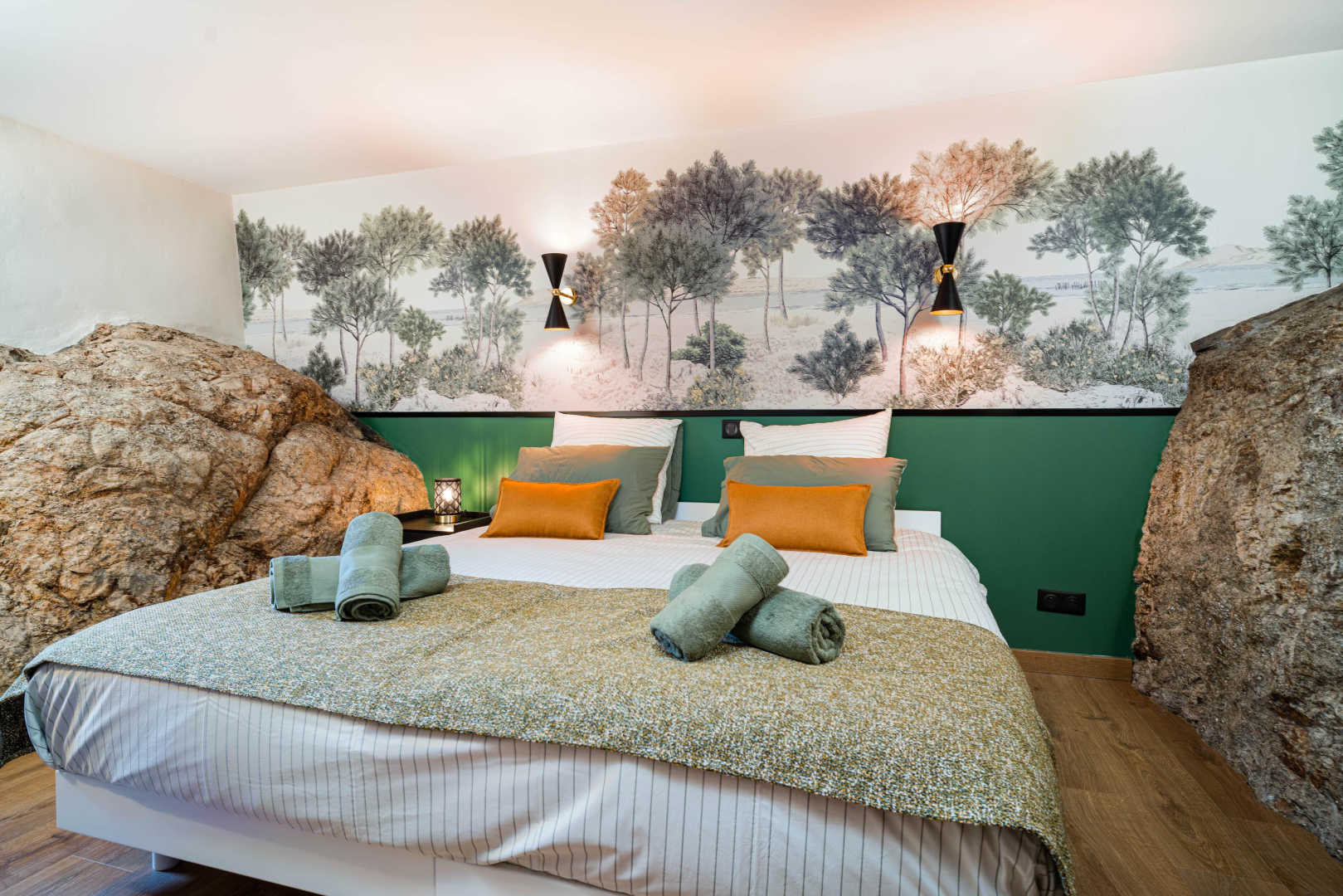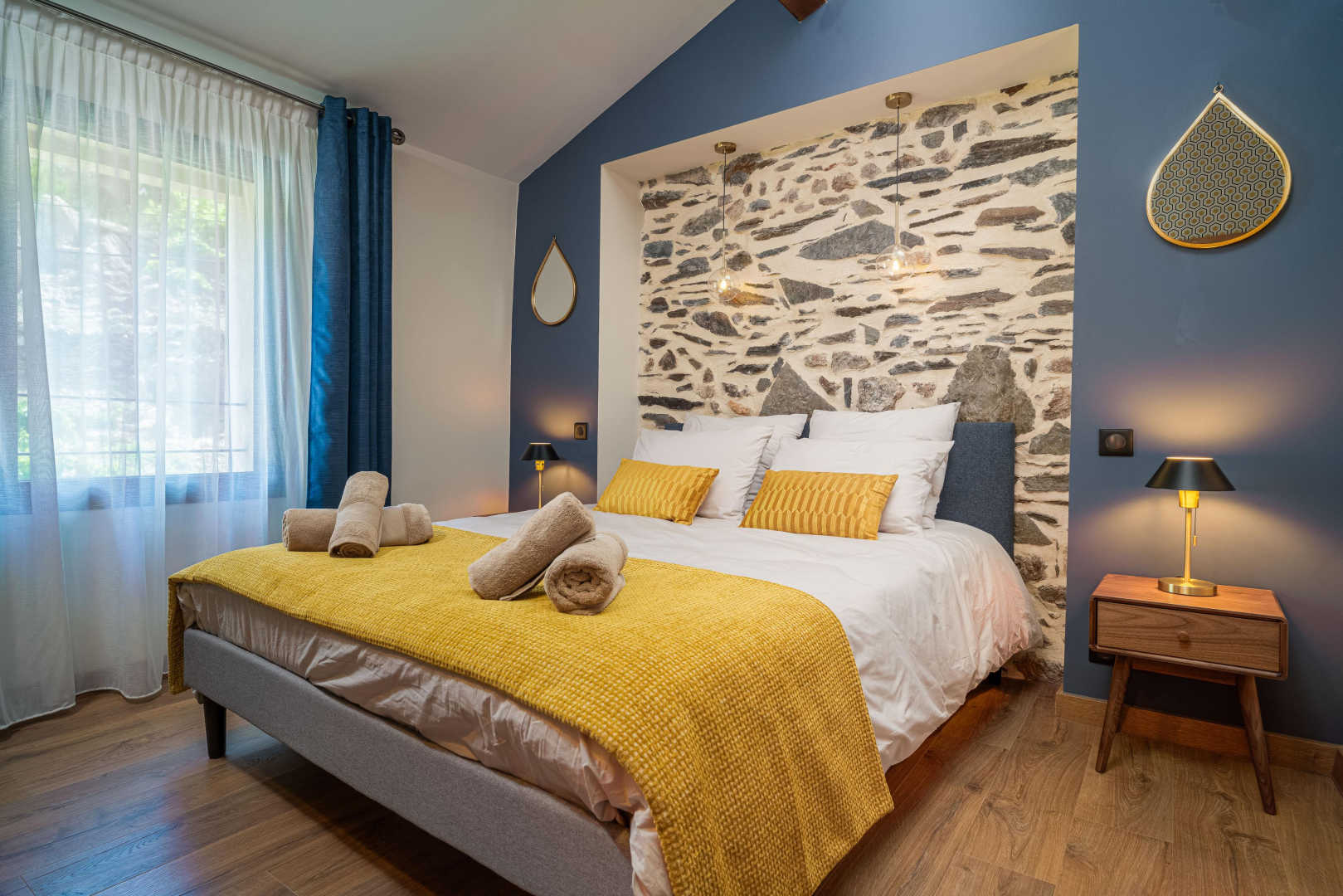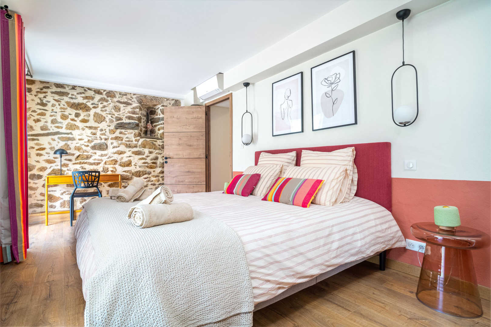 Offrant un cadre paisible et relaxant, cette maison a été décorée avec soin pour vous offrir un séjour des plus agréables, en famille, entre amis, et pourquoi pas pour un séminaire professionnel. Profitez pleinement de ce havre de paix où détente et sérénité sont au rendez-vous, à seulement 15 minutes du centre de Collioure, des plages d’Argelès-sur-Mer et de Port-Vendres. Par un escalier, vous accèderez à l’entrée et à la salle à manger, qui donnent sur la terrasse avec mobilier de jardin, sous pergola, et une vue panoramique sur le verger et le massif. Au même niveau, une cuisine équipée et un séjour confortable avec fauteuils, canapé, TV connectée (smart-TV). A l’étage, une suite parentale, avec lit queen size (160×200), TV connectée, dressing et salle de d’eau avec wc. En rez de jardin : une grande chambre avec lit king size (180×200) , TV connectée et terrasse offrant une vue magnifique. Une chambre atypique des rochers avec au choix 2 lits 90×200 ou 1 lit king size(180×200)