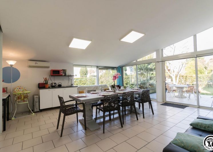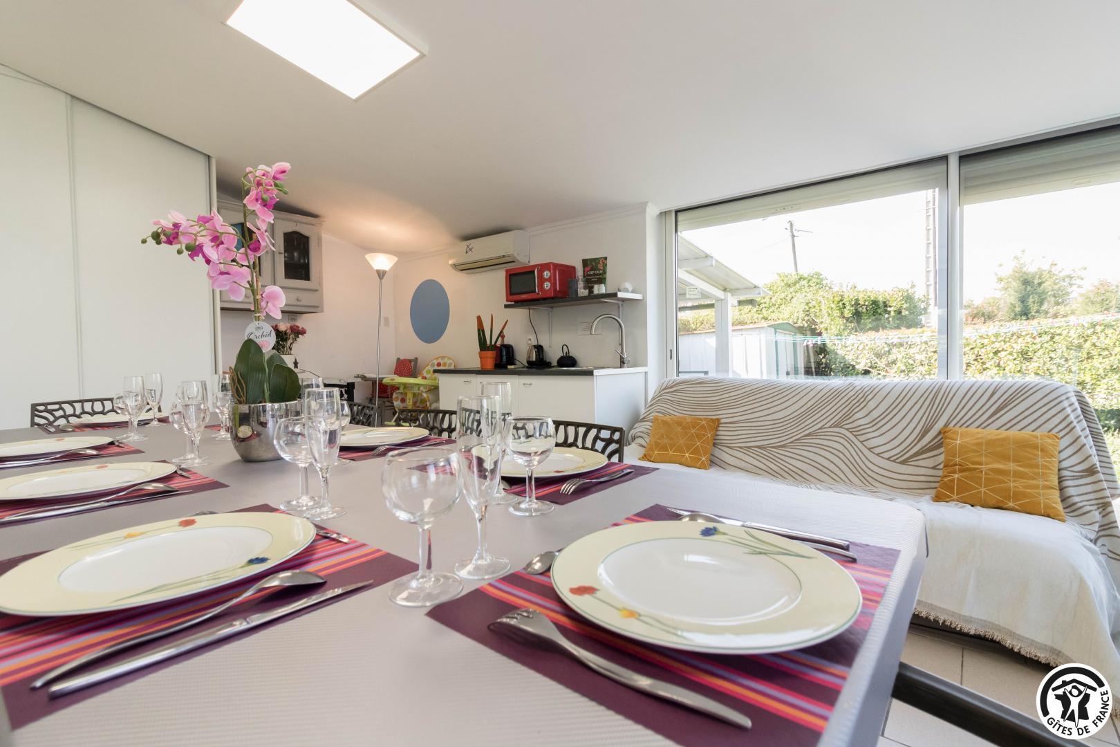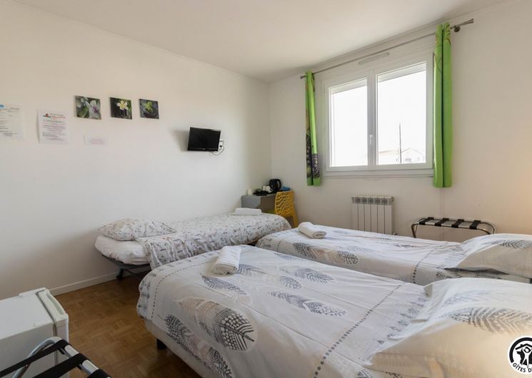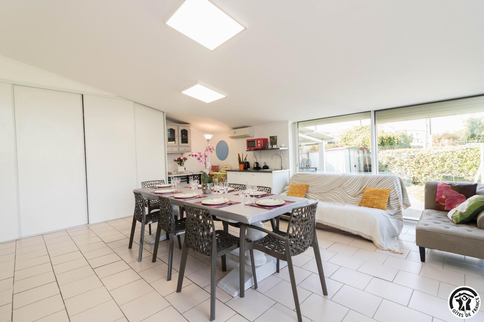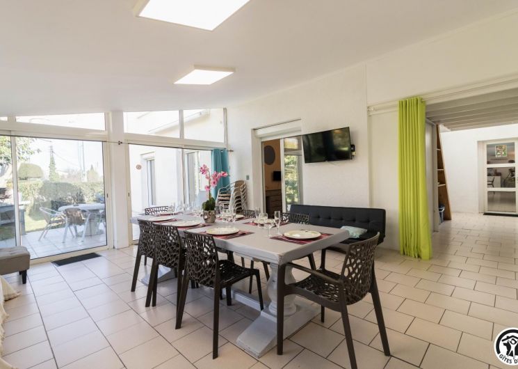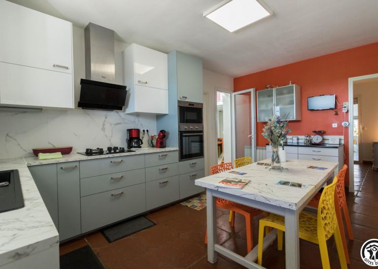 Conçu comme une véritable maison de vacances sur deux niveaux, ce gîte accueille jusqu’à 9 personnes dans un cadre soigné et chaleureux. Au rez-de-chaussée, un agréable salon/salle à manger est baigné de lumière, et propice aux moments de convivialité, tandis que la cuisine attenante permet de préparer facilement repas et dîners comme à la maison. Une chambre (TV et bureau) traverse ces 2 pièces à ce niveau. À l’étage, chacun trouve son espace : trois chambres confortables (Murano : 3 lits en 80*190cm)(Murano 2 : 2 lits en 80*190cm)(Burano : 2 lits en 80*190cm, salle d’eau/WC). Les chambres de l’étage possèdent chacune l’équipement suivant : TV, climatisation réversible, bureau et plateau de courtoisie : bouilloire, café et thé.