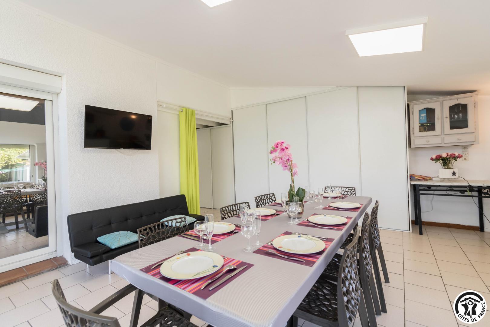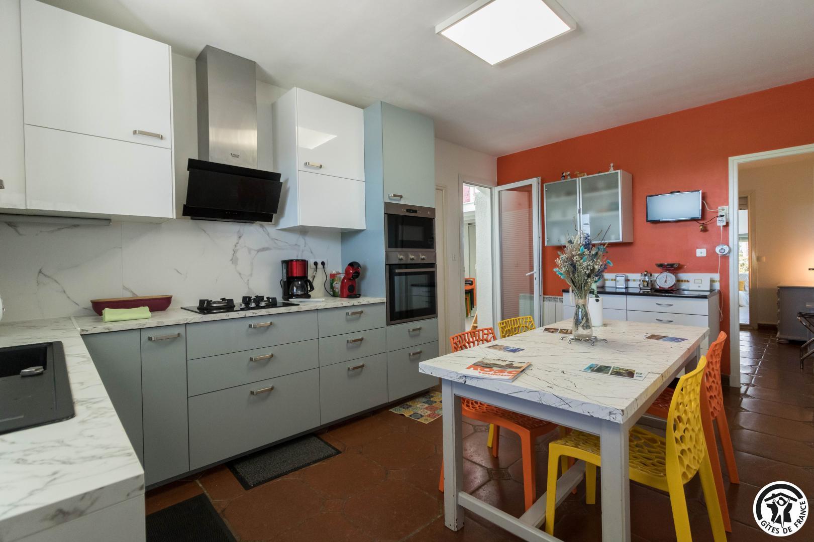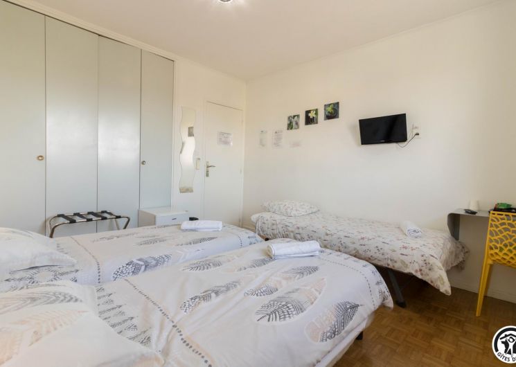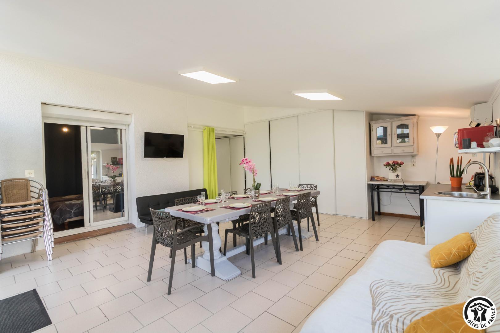 Conçu comme une véritable maison de vacances sur deux niveaux, ce gîte accueille jusqu’à 9 personnes dans un cadre soigné et chaleureux. Au rez-de-chaussée, un agréable salon/salle à manger est baigné de lumière, et propice aux moments de convivialité, tandis que la cuisine attenante permet de préparer facilement repas et dîners comme à la maison. Une chambre (TV et bureau) traverse ces 2 pièces à ce niveau. À l’étage, chacun trouve son espace : trois chambres confortables (Murano : 3 lits en 80*190cm)(Murano 2 : 2 lits en 80*190cm)(Burano : 2 lits en 80*190cm, salle d’eau/WC). Les chambres de l’étage possèdent chacune l’équipement suivant : TV, climatisation réversible, bureau et plateau de courtoisie : bouilloire, café et thé.