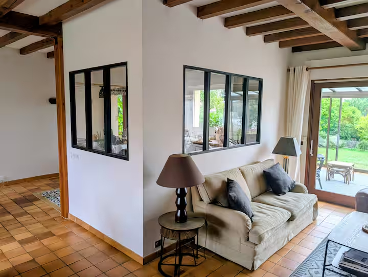 Grand séjour climatisé avec baie vitrée donnant sur une large véranda avec vue magnifique sur Gourdon. Cuisine verrière semi-ouverte sur le coin repas. 3 chambres. 2 avec lit de 140. 1 avec 2 lits électriques de 100. Salle de bain douche à l’italienne. WC séparés. Buanderie avec machine à laver, sèche linge, étendoir, nécessaire à repassage, évier, congélateur et réfrigérateur supplémentaires. Garage séparé. Parking privé Grand jardin clos avec mobilier pour repas et détente. Fibre.