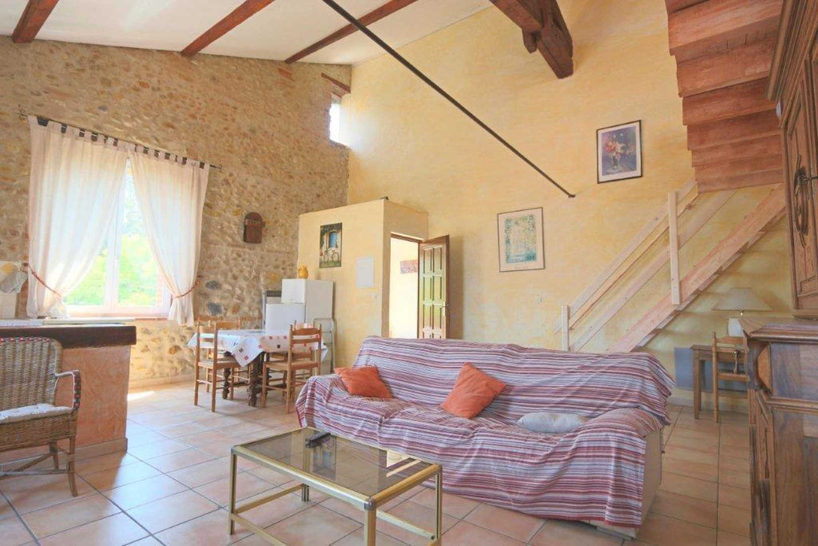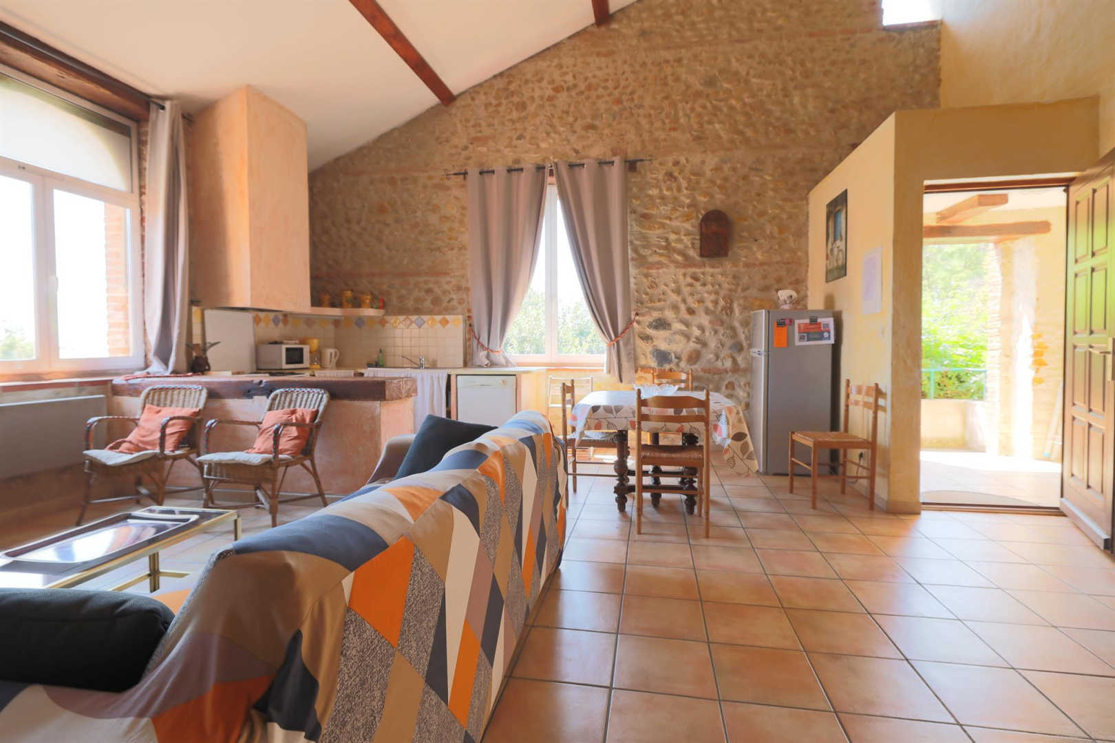 Ce gîte lumineux, et climatisé, avec ses murs en pierres apparentes et sa décoration soignée, est un lieu parfait pour des vacances reposantes à quelques pas de la mer. Vous séjournerez à Saint-Nazaire, une charmante commune nichée dans la plaine du Roussillon, proche de Canet-en-Roussillon et de sa longue plage de sable fin. Le gîte, situé au premier étage d’une maison de caractère sur la propriété agricole des propriétaires, dispose d’une entrée indépendante. À l’extérieur, vous profiterez d’un grand jardin clos commun, arboré et fleuri, avec une partie privative pour chaque gîte, équipée d’un salon de jardin et d’un barbecue. Un second gîte identique (66G118612) est mitoyen, au même niveau. Etage : Séjour avec cuisine Une chambre : 1 lit 140 x 190 Salle d’eau Wc Mezzanine avec 1 lit 140 x 190 Un parking clos sur place est à votre disposition.