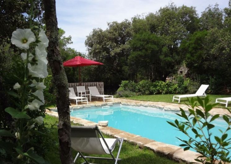Dans une bâtisse historique entièrement rénovée, située dans la superbe Haute Vallée de l’Hérault, à seulement 30 km de Montpellier Nord, découvrez le « Mas Bouvier », un havre de paix au cœur d’un parc clos de 6000 m² planté de chênes centenaires, de frênes et de micocouliers. Ce gîte individuel offre un hébergement spacieux et climatisé de 90 m² pour 6 personnes, dispose de trois chambres confortables : une chambre parentale avec salle d’eau attenante, une chambre avec un lit en 140 cm, et une chambre avec deux lits en 90 cm. Les chambres, bien exposées et équipées de moustiquaires, offrent un cadre idéal pour un repos optimal. La maison comprend une salle de séjour lumineuse, une cuisine équipée, une salle d’eau, ainsi que deux WC indépendants. Elle se distingue par sa grande terrasse de 50 m² de plain-pied, parfaite pour des repas en extérieur. Vous trouverez également une cuisine d’été entièrement équipée avec lave-vaisselle, frigo, plaque à induction, plancha, et une buanderie attenante pour votre confort. La véranda et le salon s’ouvrent sur cette vaste terrasse et le parc ombragé, offrant un cadre idéal pour des moments de détente en famille ou entre amis. En cas de visite, prière de le signaler aux propriétaires. La piscine privée (8 x 4 m, profondeur de 1,20 à 1,80 m), bordée de margelles en pierres naturelles et entourée d’une pelouse ombragée avec des bains de soleil, invite au farniente ( le propriétaire assure l’entretien de la piscine entre 18h30 et 19h30). Une large gamme d’activités de loisirs est à disposition : table de ping-pong, hamacs, balancelle, terrain de pétanques etc… Parking libre sous les arbres. Attractions aux alentours : Le Mas Bouvier est idéalement situé pour explorer la richesse naturelle et culturelle de la région : Et le village de Notre Dame de Londres, * Randonnées et VTT : départs immédiats depuis le gîte sur le Réseau Vert (530 km d’itinéraires) * Sites emblématiques : visitez Saint-Guilhem-le-Désert, le Cirque de Navacelles, le Pic Saint-Loup, les gorges de l’Hérault, les grottes et les villages médiévaux environnants. * Activités sportives : escalade, spéléologie, équitation et canoë-kayak. Commodités : À 500 m, le beau village médiéval de Notre-Dame-de-Londres propose un café-restaurant et un camion de pizza ambulant certains soirs. Tous les autres commerces, ainsi qu’un supermarché, se trouvent à 6 km, à Saint-Martin-de-Londres ( Marché tous les dimanches matin ).