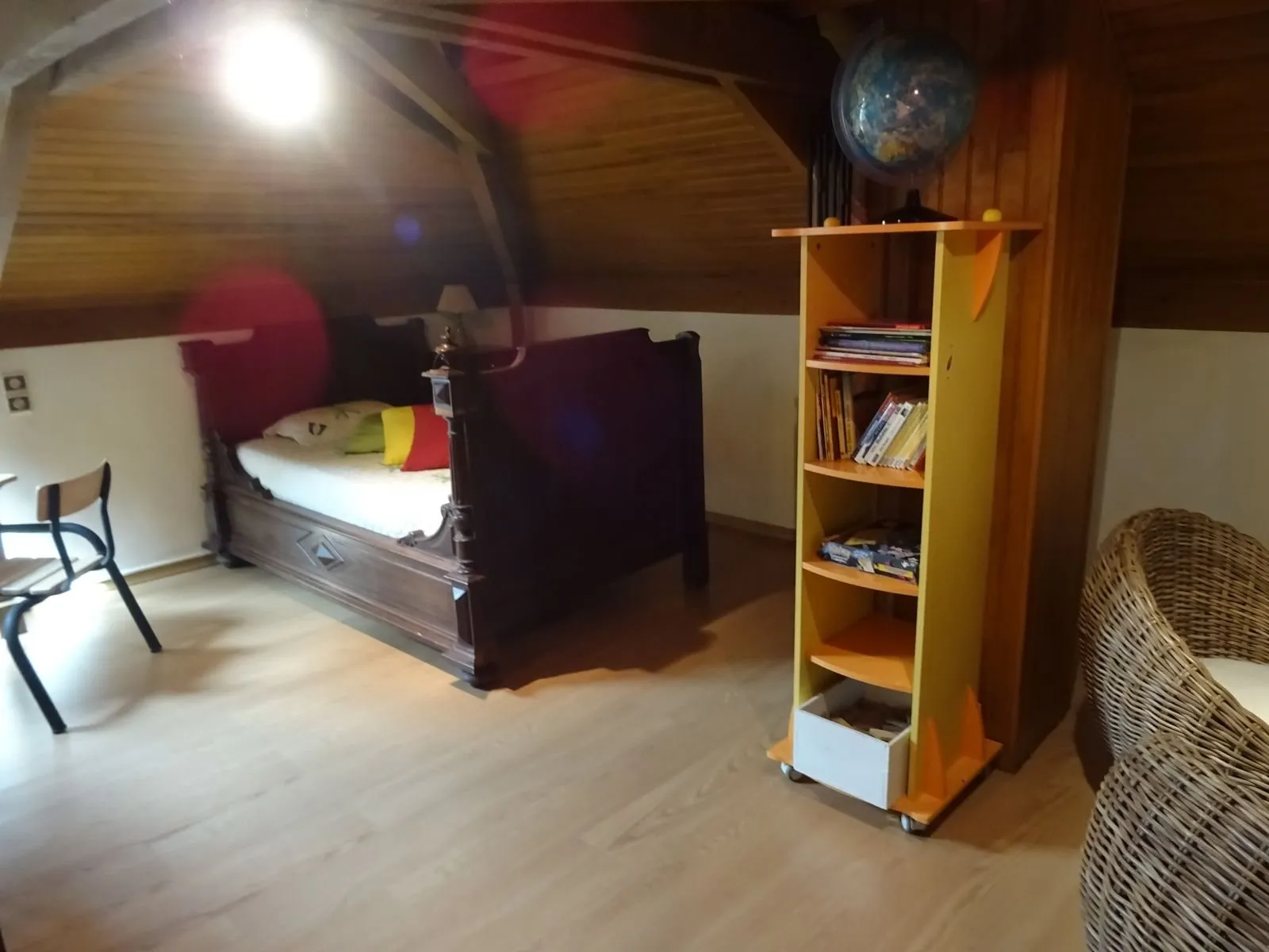 Cette location de vacances conçue sur 2 niveaux, vous propose 3 chambres, 2 se situent au rez-de-chaussée et disposent respectivement d’un lit en 140 et de 2 lits en 90, à l’étage une chambre mansardée avec un lit pour 2 personnes en 140 et une mezzanine mansardée équipée d’un lit en 120 x 180 et d’un canapé. Dans le gîte également : une salle d’eau avec lave-linge, une cuisine avec lave-vaisselle, four et micro-ondes, un salon avec canapé, un insert et une télévision. Chauffage complet électrique. Vous aurez également accès au jardin et à la terrasse dallée de 1 100 m² (non clos), au salon de jardin et au barbecue. Taxe de séjour en supplément.