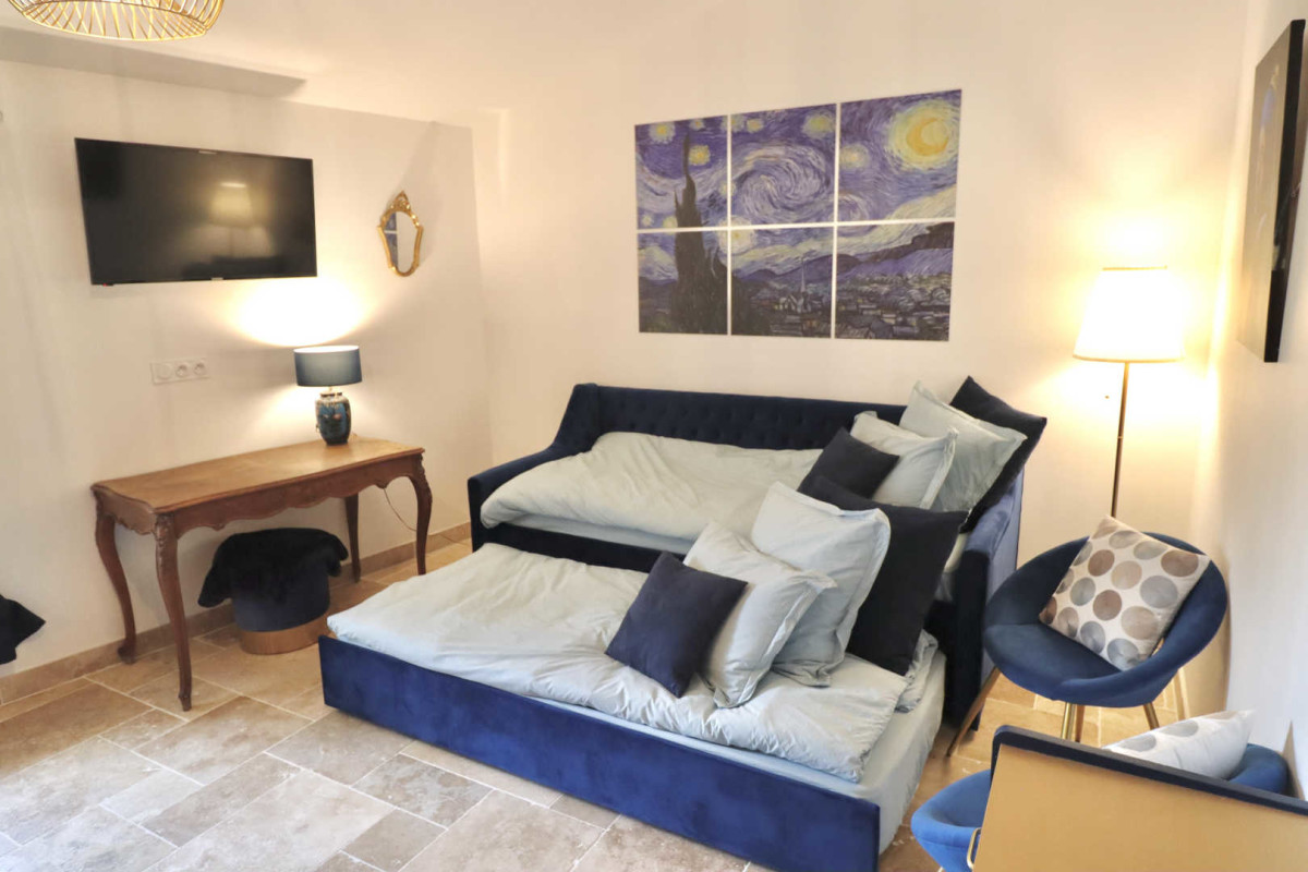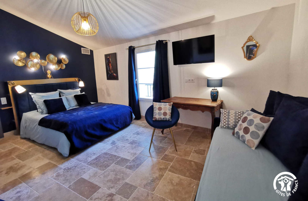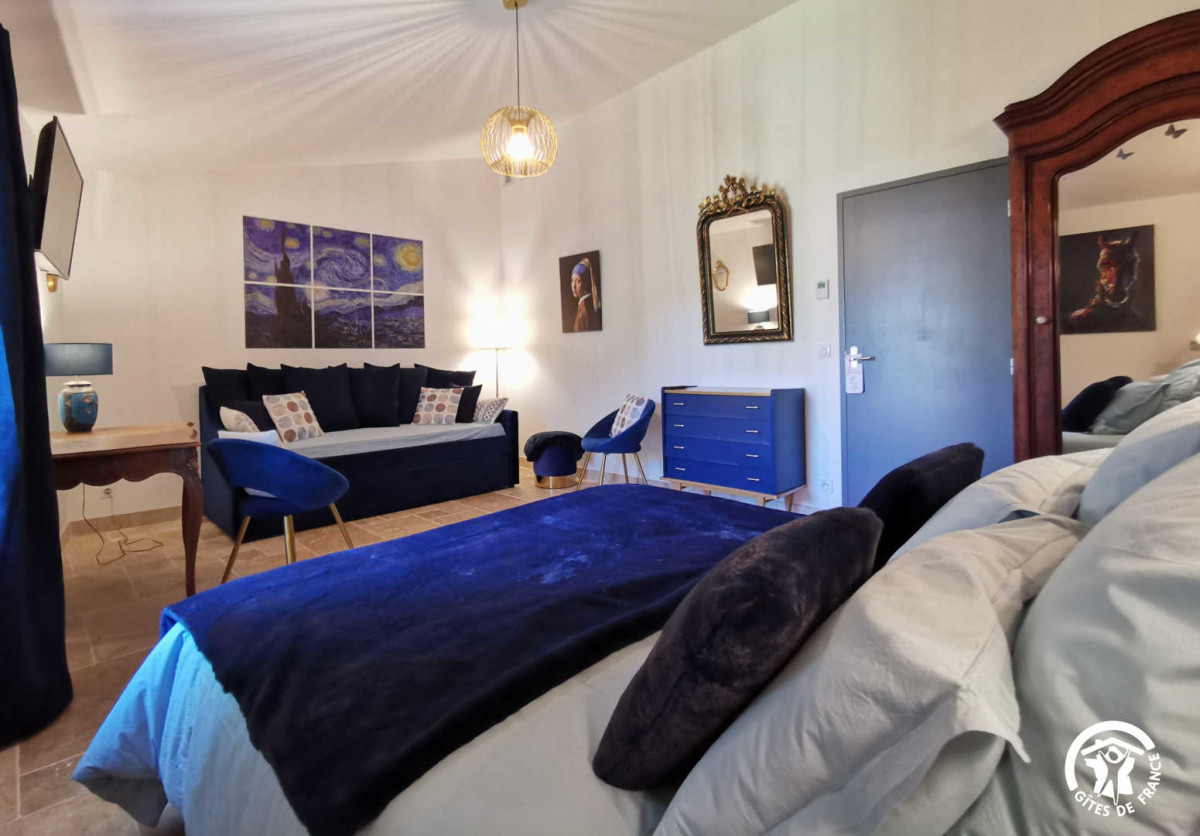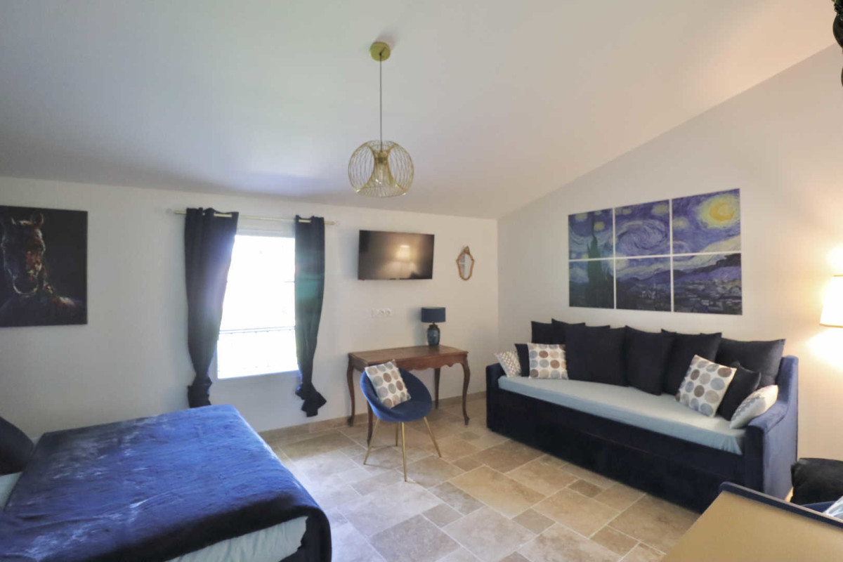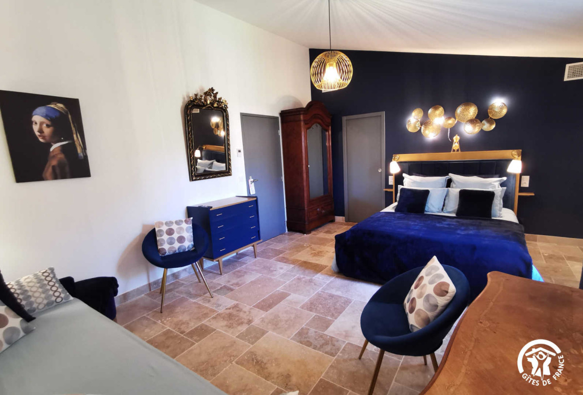 Entièrement rénové, ce mas vigneron offre un cadre enchanteur avec des installations haut de gamme telles qu’un jacuzzi, une grande piscine commune avec ses terrasses en pleine nature, des aires de jeux, et bien plus encore. Imprégnez-vous de l’atmosphère unique du Mas de Cadoule, entouré d’un parc majestueux, de vastes espaces verts avec ses vergers sur près de 4 hectares. L’architecture préservée et la cour intérieure paysagée ajoutent une touche d’histoire à ce havre de modernité. Découvrez la dernière nouveauté du domaine, les trois chambres d’hôtes qui vous accueillent dans l’ancien pressoir du Mas. Aménagée avec élégance chacune des trois chambres d’hôtes est soigneusement décorée pour refléter une personnalité distincte. À l’image des gîtes, chaque chambre est dédiée à une femme marquante de l’histoire du Mas : Claire, Madeleine et France. Ouvertes depuis juillet 2023, ces chambres offrent aux visiteurs un espace à la fois spacieux et paisible. Chacune est pourvue d’une salle de bain privée et de tout le confort moderne, incluant la climatisation réversible, un lit king size de qualité hôtelière, une colonne de douche, une télévision écran plat, un accès Wifi, un bureau, … Pour débuter la journée, un petit déjeuner copieux et gourmand est proposé principalement avec des produits locaux et bio. Il est servi le matin dans la salle à manger commune dédiée aux hôtes au RDC, ou par beau temps, sur l’une de nos terrasses offrant une vue pittoresque sur le parc intérieur ou les vastes espaces verts et arborés. Profitez des nombreux services : Parcourez les 4 hectares de parcs, jardins et vergers ; Garez votre véhicule dans le parking ombragé et sécurisé avec portail automatique ; Protégez vos motos et vélos dans l’espace couvert dédié ; Organisez des moments conviviaux avec le barbecue ; Détendez-vous au bord de la piscine de 19X5 mètres (ouverte de 11h jusqu’au coucher du soleil de mai à septembre) ; Amusez-vous en famille sur une aire de jeux – Chambre familiale, douche, 1 chambre