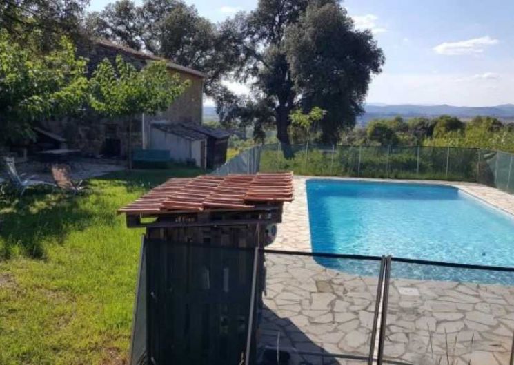 Maison de 90 m2 pour 6 personnes, avec 3 chambres, terrasse, jardin, piscine.