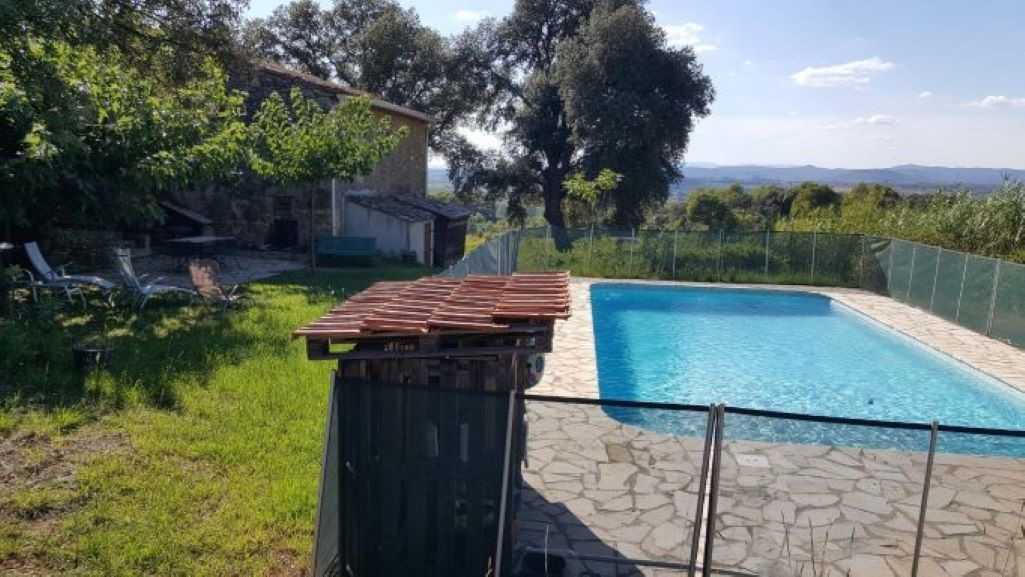 Piscine 10 x 5 m, 1.10 à 1.80 m de profondeur, avec barrières de protection. Barbecue. Parking. Linge de maison fourni.