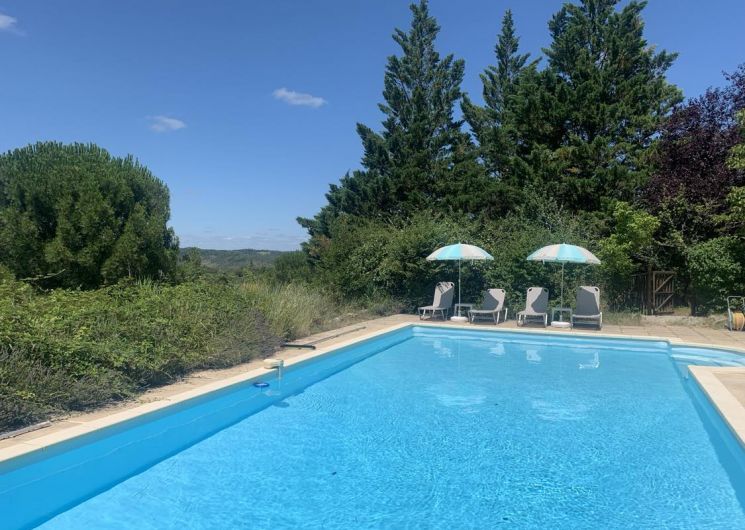 Deux gites avec une piscine sur les hauteurs au calme proche de Cahors, Saint-Cirq-Lapopie et la vallée du Lot. Un endroit merveilleux où se détendre. Le Mas des Cyprès est une ancienne ferme sur les hauteurs avec des superbes vues. Chaque gite a sa propre terrasse : la piscine et sa terrasse sont partagées. Nos amis les chiens sont les bienvenues mais pas les autres animaux. Ici vous apprécierez le calme et les couchées de soleil magnifiques – à dix minutes de Cahors avec son marché, les restaurants… Un lieu idéale et centrale pour visiter tous les coins du Lot, Rocamadour, les vignerons autour de Puy L’Evêque, Figeac, Carcassonne est à 2 h. De samedi au samedi en haute saison.