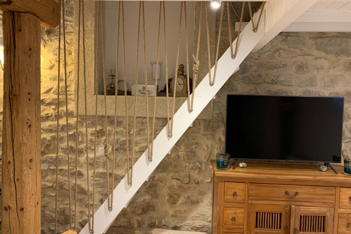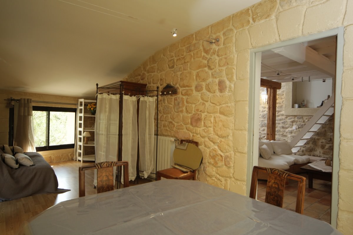 L’Estaou de Finou est niché dans un domaine au cœur de la garrigue et au départ des sentiers de randonnée. Idéal pour un couple avec enfants (déconseillé aux enfants de moins de 6 ans), ces derniers ayant la possibilité de dormir en mezzanine ( bas de plafond) ou bien dans un canapé lit. 6 couchages sur trois niveaux :*Une suite parentale en rez-de-chaussée avec son dressing, sa salle d’eau et wc. A l’étage un salon/cuisine ouverte, salle d’eau et wc indépendants. En mezzanine, deux lits simples (couchages en 90). Dans la partie salle à manger, séparé par des rideaux, un « coin nuit » avec deux lits simples (couchages en 90), cette pièce ouvrant sur une cour sous tonnelle avec espace repas. L’Estaou de Finou peut ainsi accueillir une famille de 4 à 6 personnes. Accès partagé avec les deux autres gîtes, aux installations du domaine : terrain de pétanque, piscine chauffée, pool House, kiosque de jeux, terrasses, salons de jardin. Accès en supplément et sur réservation à « l’Espace Bien Être du Mas ».
