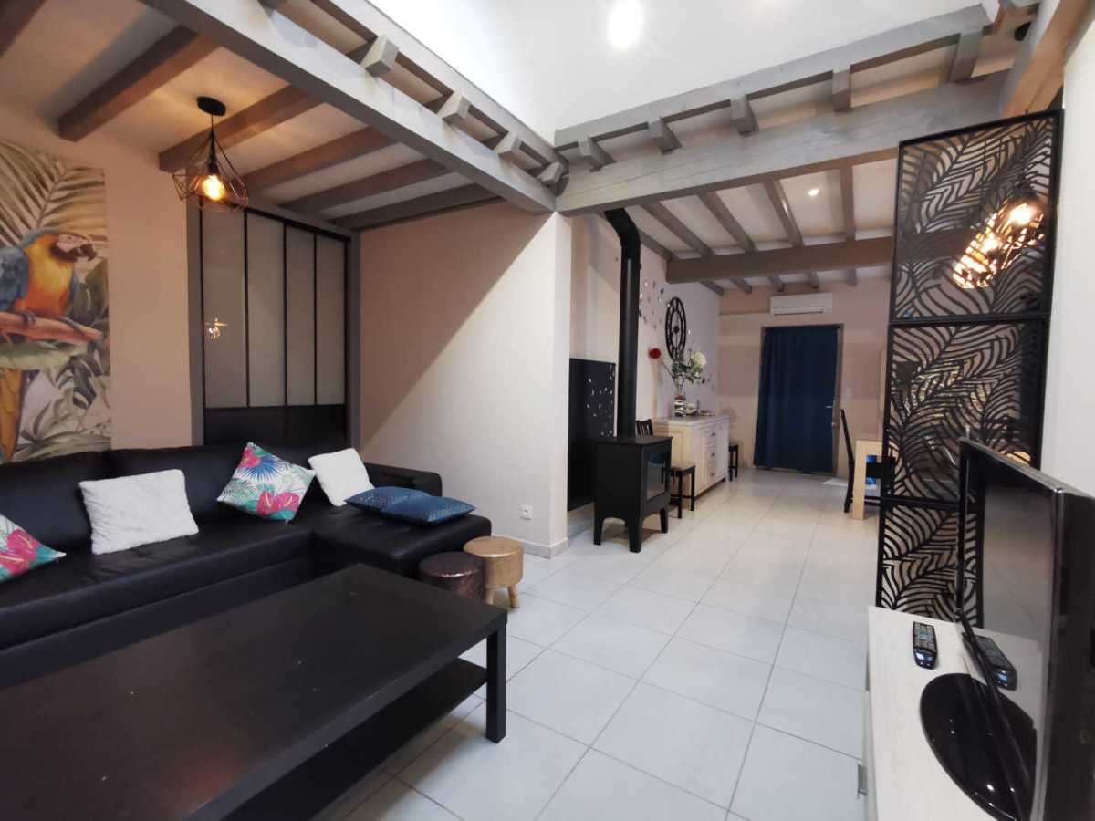Au coeur du vignoble du Picpoul de Pinet, sur une exploitation viticole proche de l’Etang de Thau et entouré d’une pinède, à proximité de la demeure du propriétaire, nous vous proposons un gîte de 80 m2 composé d’une salle de séjour avec cuisine équipée, une chambre avec 1 lit pour 2 personnes (160X200), une chambre avec 2 lits de 90×200, une salle d’eau, wc, télévision, climatisation réversible, poêle à bois. Le gîte est mitoyen avec un autre gîte mais sans vis-à-vis. Profitez de l’espace extérieur, sur un terrain non clos et commun avec barbecue et parking. Prêt de vélos à la demande. Le gîte dispose de deux accès, un en bas du gîte avec un escalier et un autre en haut du gîte avec une seule marche. ATTRAITS TOURISTIQUES : étang de Thau : Bouzigues, Marseillan, Sète (port, Mont St Clair, plages, musées). Villes : Béziers, Agde, Pézenas, Cap d’Agde, Valras.