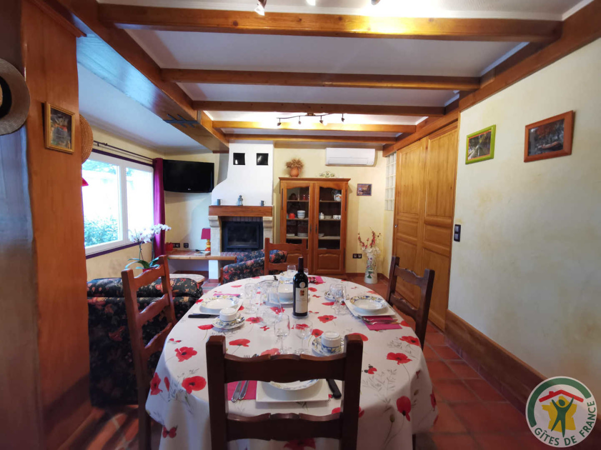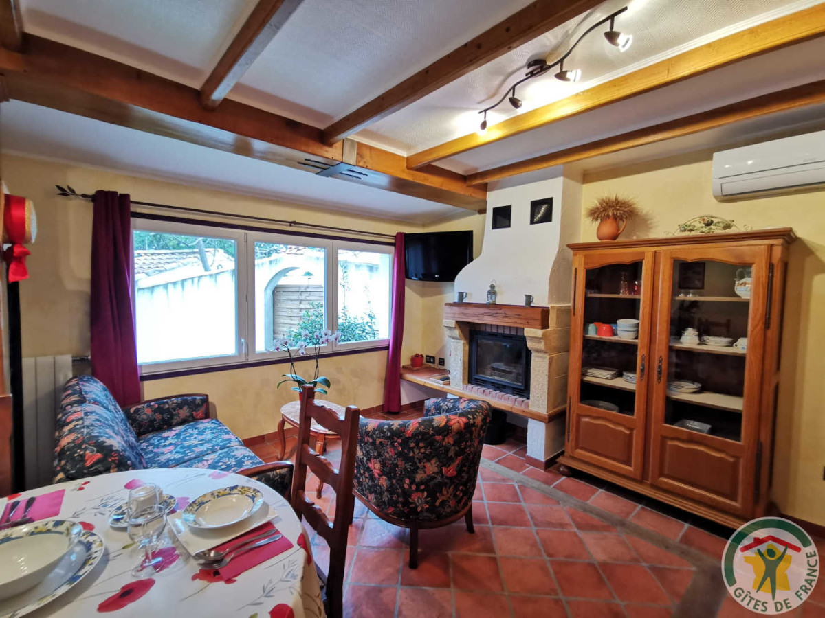 La pièce à vivre se compose d’un espace cuisine, salle à manger et salon. Deux chambres sont à disposition, dont une chambre avec deux lits (90×190, modulable si besoin en lit double – à demander à la réservation ) et une chambre double (140×190) ainsi qu’une salle d’eau avec WC. Une buanderie avec lave-linge/sèche-linge complète la maison. La maison est équipée du chauffage central et de la climatisation reversible (charges incluses dans la limite de 56 kwh/semaine), ainsi que d’une cheminée (1ère flambée offerte). Les lits sont faits à l’arrivée, le ménage de fin de séjour et linge de toilette sont en option. Des équipements bébé sont à disposition à la demande. A l’extérieur, vous appréciez votre terrasse privative de 45m² avec salon de jardin et barbecue. Plusieurs places de parking privatives sont disponibles dont une sous abri, pour voiture ou moto (mise à disposition de la 3ème roue) ATTRAITS TOURISTIQUES : Béziers, le canal du Midi (classé au patrimoine mondial de l’Unesco), l’Oppidum d’Ensérune, gîte situé sur le chemin de St Jacques de Compostelle à l’Abbaye de Fontcaude, Roquebrun (jardin méditérranéen), Valras-plage, le Parc Naturel du Haut Languedoc.