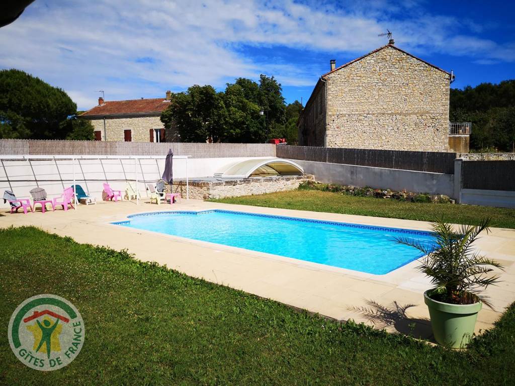 Gîte tout confort, lumineux, avec le charme des pierres apparentes, disposant d’une piscine partagée et d’un barbecue.