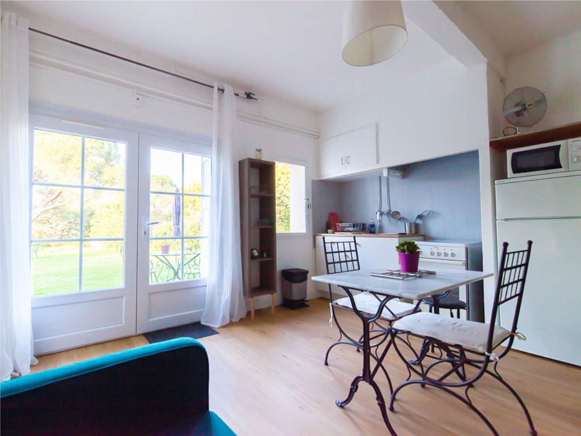 Votre appartement “Argelès” de 27 m² de plein pied bénéficie d’une superbe vue sur le parc arboré du Mas. Il profite d’une terrasse privative protégée d’une voile d’ombrage et offre un espace repas à l’extérieur ainsi que deux bains de soleil. Parfaitement équipé il se compose d’une cuisine ouverte sur une jolie pièce de vie décorée de façon moderne et originale, d’une chambre séparée avec un lit double et d’une salle de douche. Rénové récemment, ses prestations, la qualité de sa literie et l’environnement dont il bénéficie vous assureront un superbe séjour à Argelès sur Mer. Disponibles et habitant sur place, nous serons à votre écoute pour que vous viviez la meilleure expérience de vacances possible à Argelès sur Mer. Que ce soit pour un séjour détente ou sportif, le Mas Paret est le lieu idéal pour déconnecter et bénéficier du rythme et du cadre de vie Catalan. Notre devise : « Aqui estem bé » (ici on est bien)