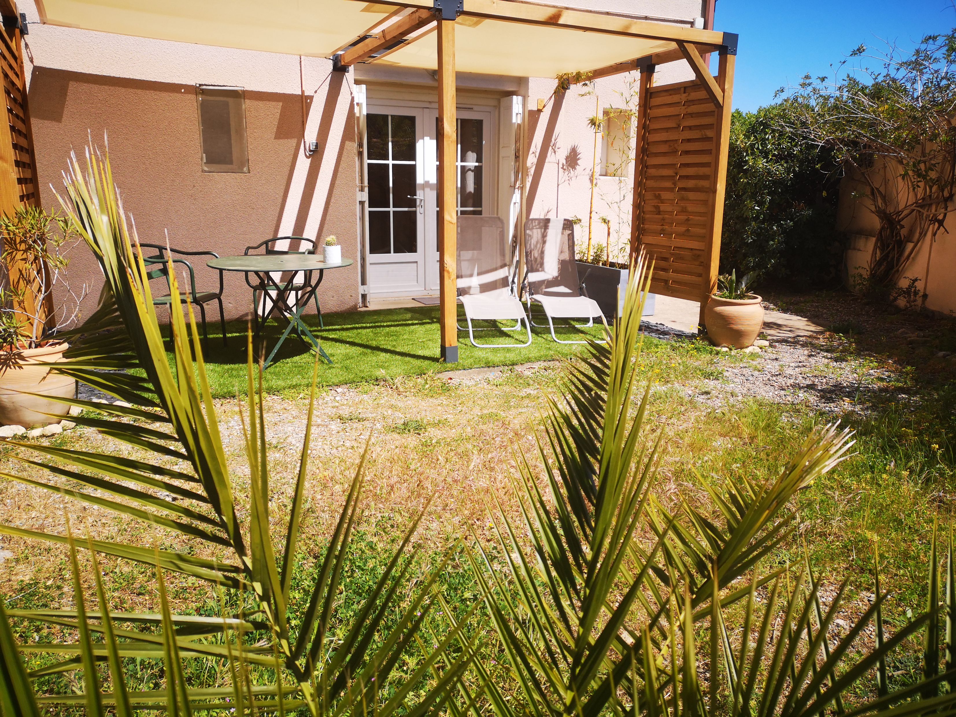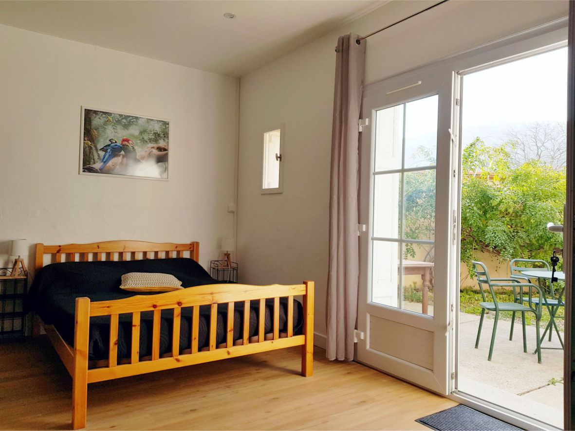 Le Mas Paret propose 7 gîtes à la location pouvant accueillir de 1 à 4 hôtes dans un environnement calme et préservé. Vous pourrez profiter sur place de nombreux services propices à un séjour réussi : une place de parking privée et ombragée, une pièce commune conviviale avec piano, fléchettes, bibliothèque, ainsi que des lieux de détente et de jeux au sein du parc : barbecue, pétanque, hamac, tables de pique-nique, balançoire, slackline, ping-pong, vélos… occuperont petits et grands ! Votre appartement “Madeloc” de 27 m², orienté au sud de plein pied, offre une superbe vue sur le massif pyrénéen des Albères. Il profite d’une terrasse privative ombragée proposant un espace repas à l’extérieur ainsi que des bains de soleil. Entièrement équipé il se compose d’une cuisine ouverte sur une belle pièce de vie agréablement décorée, d’un lit double et d’une salle de douche. Rénové récemment, ses prestations