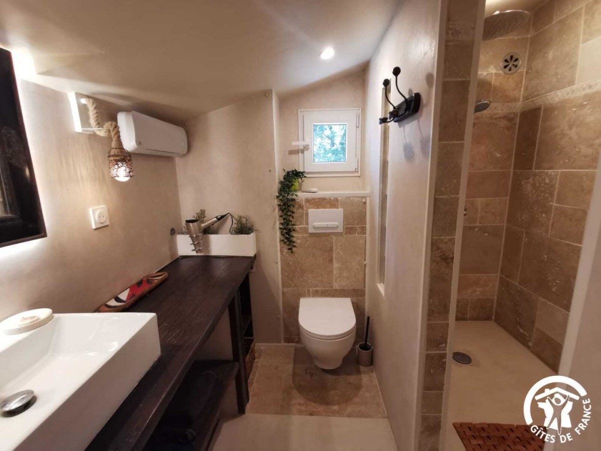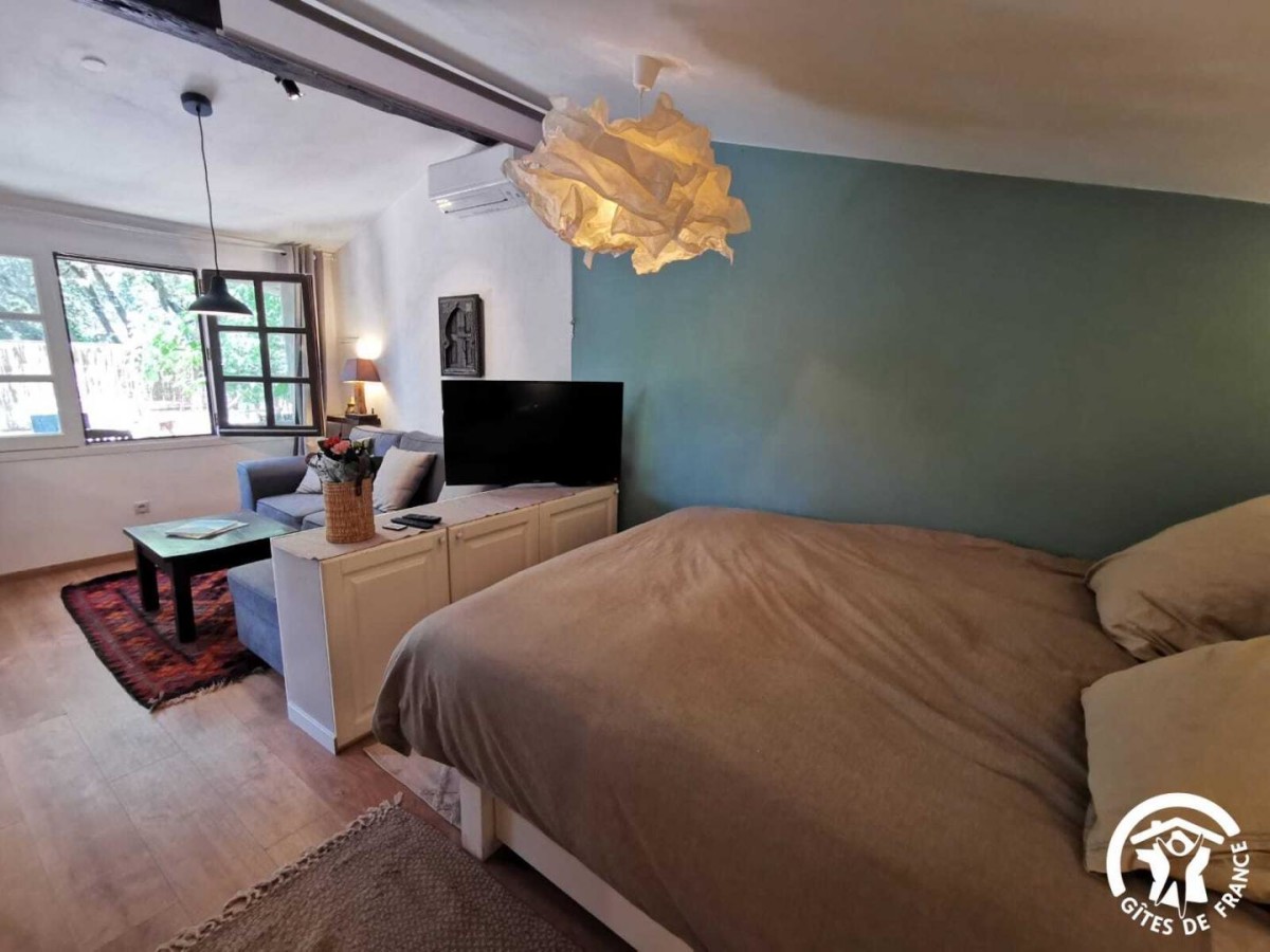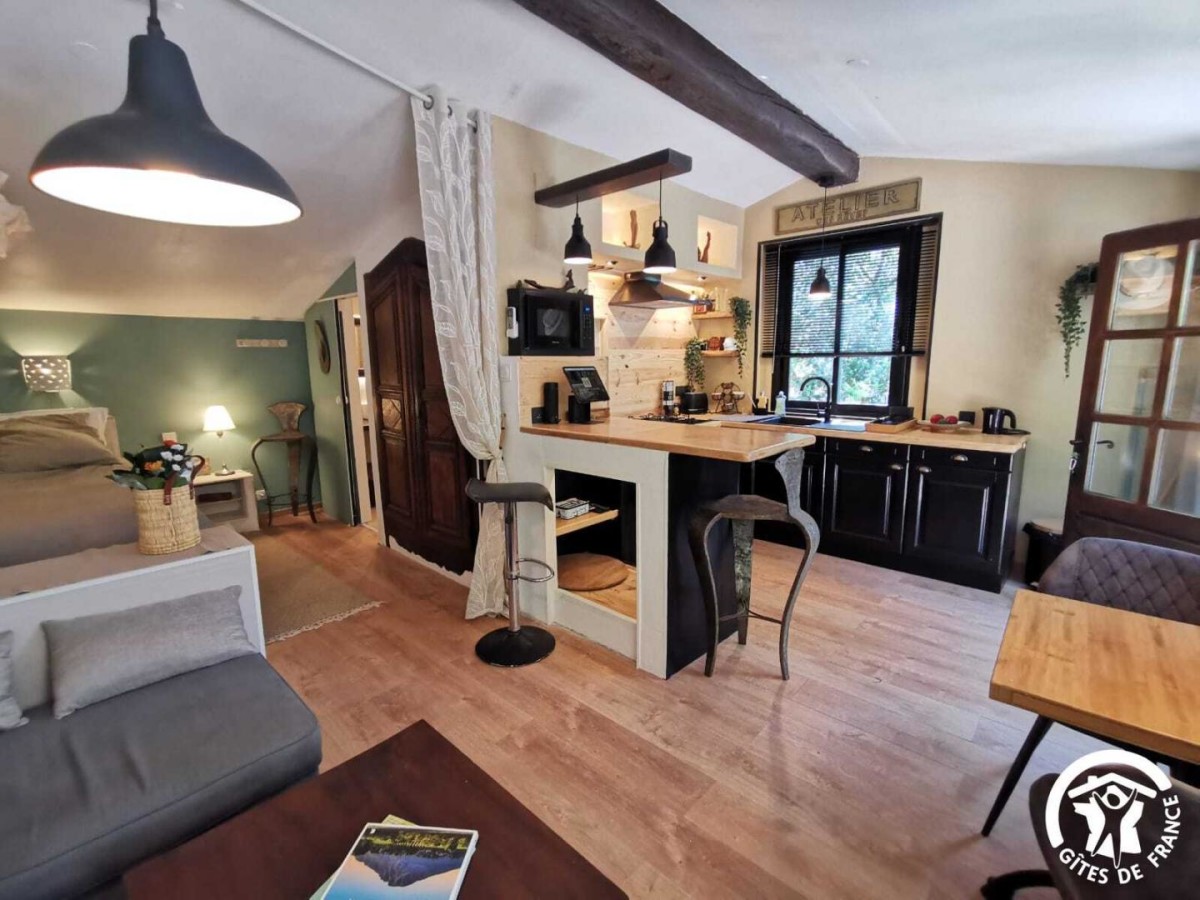 A Saint-Bauzille de Montmel, découvrez ce studio entre tradition et modernité, idéal pour un couple ou entre amis, niché dans un joli jardin arboré. Idéalement situé à quelques kilomètres de Montpellier, profitez de votre séjour pour visiter le petit village de Saint-Bauzille de Montmel au milieu des vignes. Profitez-en également pour visiter Montpellier, sa place de la Comédie, ses commerces, son centre historique, sa promenade du Peyrou… Découvrez l’arrière-pays héraultais à pied ou à vélo, en découvrant des lieux uniques tels que le Pic Saint-Loup où vous pourrez profiter de vues imprenables sur la région. N’oubliez pas non plus de vous détendre à l’occasion sur des nombreuses plages du littoral héraultais. Le gîte, climatisé, est composé de : – Un salon confortable avec canapé et télévision (qui peut être tournée vers le coin nuit), une table basse pour manger à deux ainsi qu’une belle cuisine bien équipée avec frigo top, micro-ondes combiné four, lave-linge, machine à café et tout le nécessaire de cuisine pour votre séjour à deux ; – Un coin nuit dans la même pièce avec un lit en 160×200 cm ; – Une salle d’eau avec douche, WC et vasque avec miroir ; – Une terrasse privative devant le gîte avec un salon de jardin ainsi qu’un espace jardin à l’arrière du gîte avec salon de jardin, chaises longues et petits bancs, idéal pour se détendre à l’ombre ; – Une piscine accessible sur horaires.