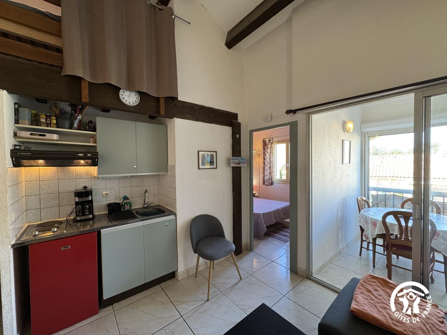 Bienvenue à Argelès-sur-Mer, l’endroit parfait pour un séjour détente à la plage ou des activités plein air et découvertes culturelles. A proximité, vous profiterez des merveilles de la Côte Vermeille et partez à la découverte de Collioure et Banyuls-sur-Mer. Visitez les charmants villages environnants comme Laroque-des-Albères et le marché de Céret. Du gîte, vous serez à quelques kilomètres des sentiers côtiers et pistes cyclables. A Argelès- Plage, dans une des rues principales, à 500 m de la plage, une résidence en copropriété comportant 31 appartements. Le gîte est situé au 1er étage : – Coin cuisine/séjour – Salle à manger – Chambre 1 : 1 lit 140 x 190 – Salle d’eau avec WC – Mezzanine : 2 lits 90 x190 1 place privative de parking situé à 100 m.