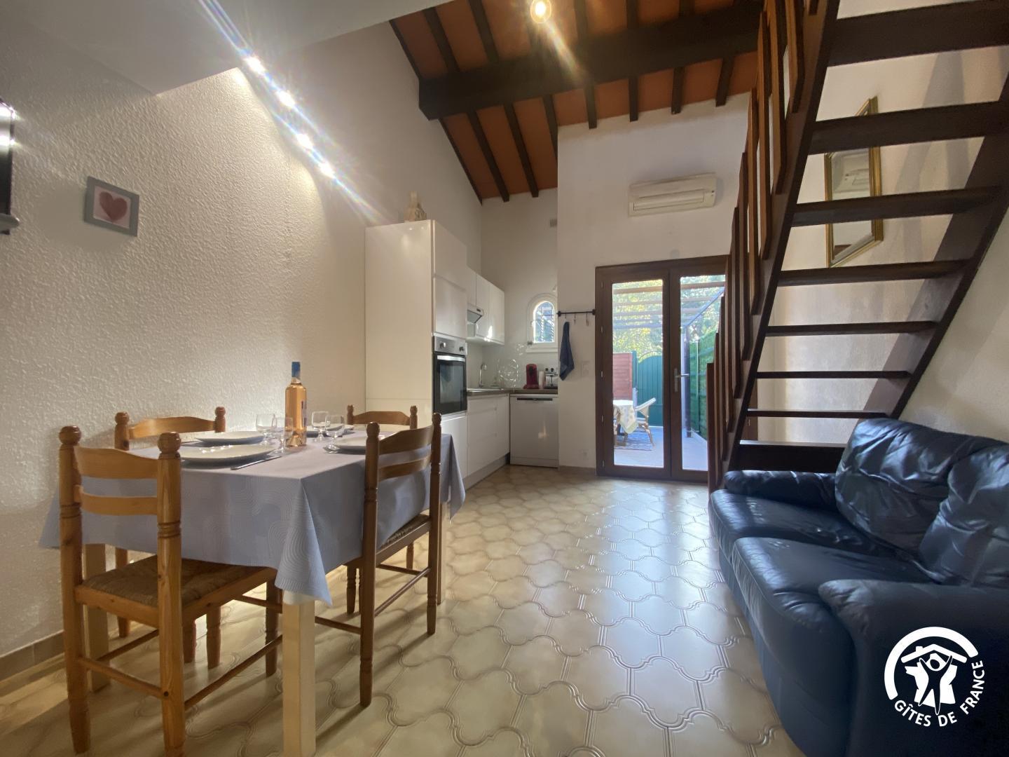 Profitez d’un séjour authentique à Saint-Cyprien Plage dans cette maison avec terrasse et parking, proche des plages et du port. Situé au cœur de la station balnéaire de Saint-Cyprien Plage, ce gîte vous accueille pour un séjour authentique entre mer et nature. À seulement quelques minutes à pied des plages dorées et du port cette maison vous offre le confort nécessaire pour un moment de détente en famille ou entre amis. Saint-Cyprien Plage est une destination prisée pour ses plages de sable fin, son port dynamique et ses nombreuses activités nautiques. Vous pourrez vous adonner à la voile, au paddle ou encore à la plongée sous-marine. Rez-de-chausée : cuisine avec séjour donnant sur terrasse close de 15 m² équipée d’un salon de Jardin et d’un barbecue une chambre avec 1 lit 140 x 190 avec accès direct à l’avant à l’emplacement de parking privatif clos Salle d’eau WC Etage : Une mezzanine avec 1 lit 140 x 190 et 1 lit 90 x 190