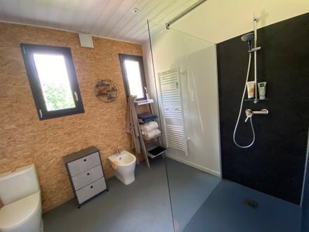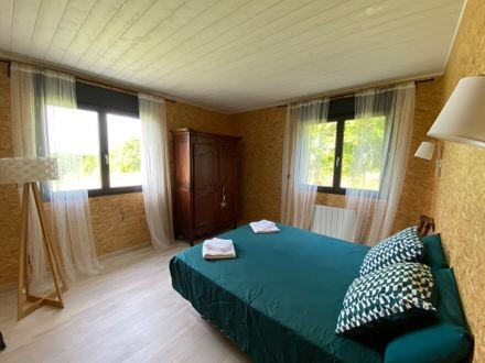 La partie nuit comprend une salle d’eau avec wc, 1 chambre (1 lit 140), 1 chambre(1 lit 160), 1 chambre (2 x 0.90) ainsi qu’une buanderie équipée. Sur la terrasse, vous pourrez profiter du salon de jardin et de 6 bains de soleil. Barbecue mobile. Espace vert privé devant la terrasse. En option location de linge de toilette et forfait ménage. Internet par wifi.