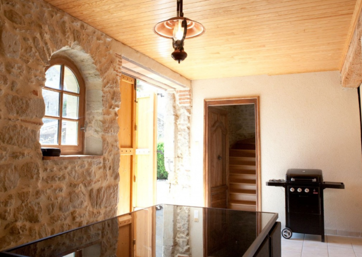 Extérieur privatif : grande cour gravillonnée non close privative au gite, parking, salon de jardin, barbecue.