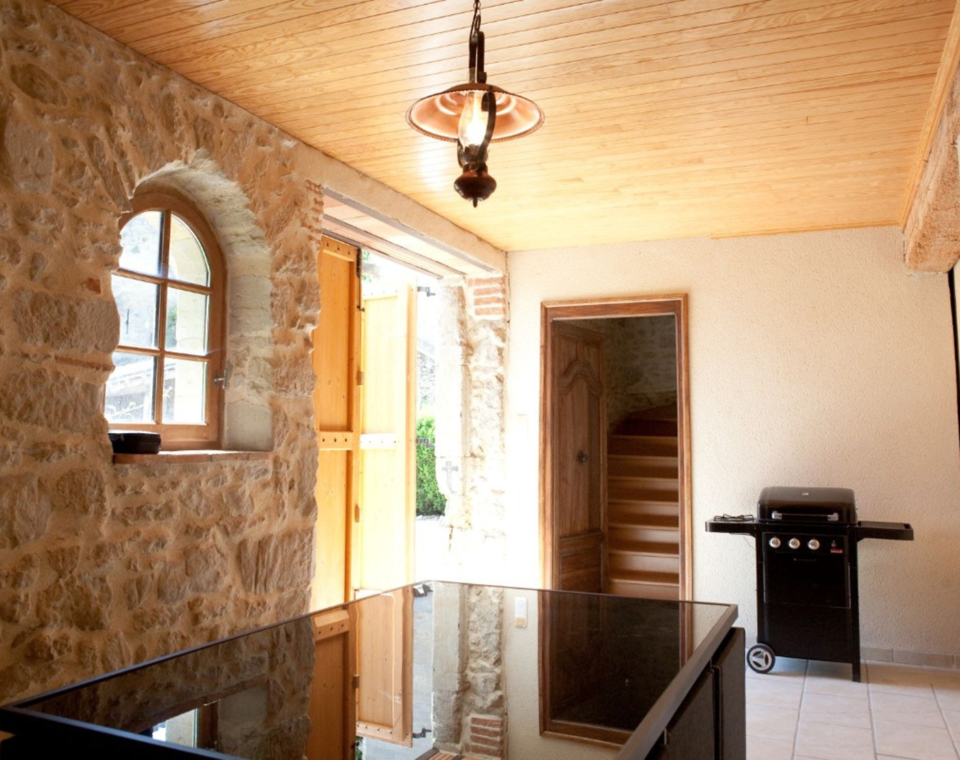 L’accès se fait par le rez-de-chaussée : pièce d’été avec salon de jardin, buanderie avec lave-linge et sèche-linge.
