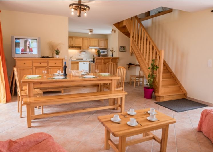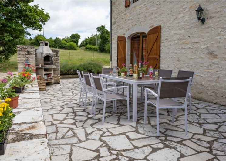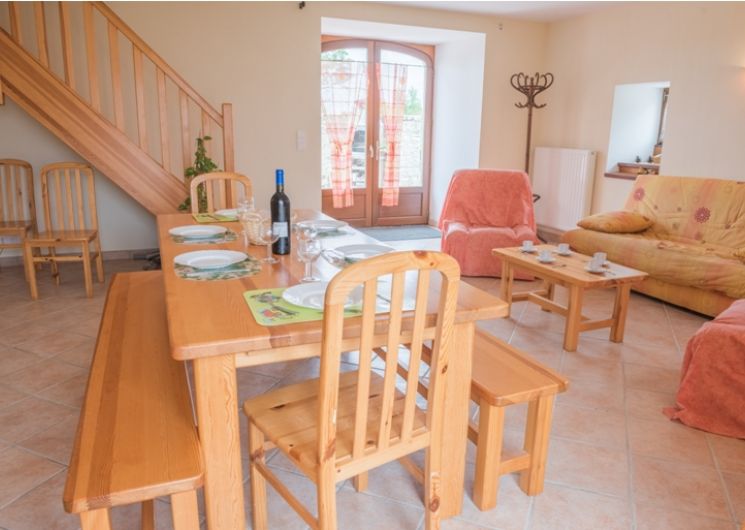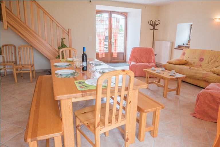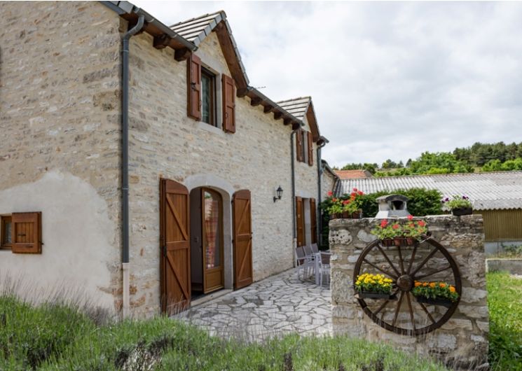 Maison à l’entrée du hameau de Laumède sur le Causse de Sauveterre, comprenant : Au rez-de-chaussée : séjour (canapé non convertible, télévision), cuisine intégrée (micro-ondes, lave-vaisselle, combiné congélateur), salle d’eau, WC indépendants, lave-linge. A l’étage : 2 chambres (140/190), 1 chambre (avec 2 lits 90/190), coin salon (banquette ) avec télévision et magnétoscope, salle d’eau et WC indépendants. Terrasse de 42m² avec salon de jardin et barbecue. Le gîte ne possède pas d’abri pour les vélos. Les animaux ne sont pas admis. Chauffage au forfait à régler sur place. Les séjours d’entreprises ainsi que les fêtes/évènements ne sont pas autorisés. Merci de votre compréhension.