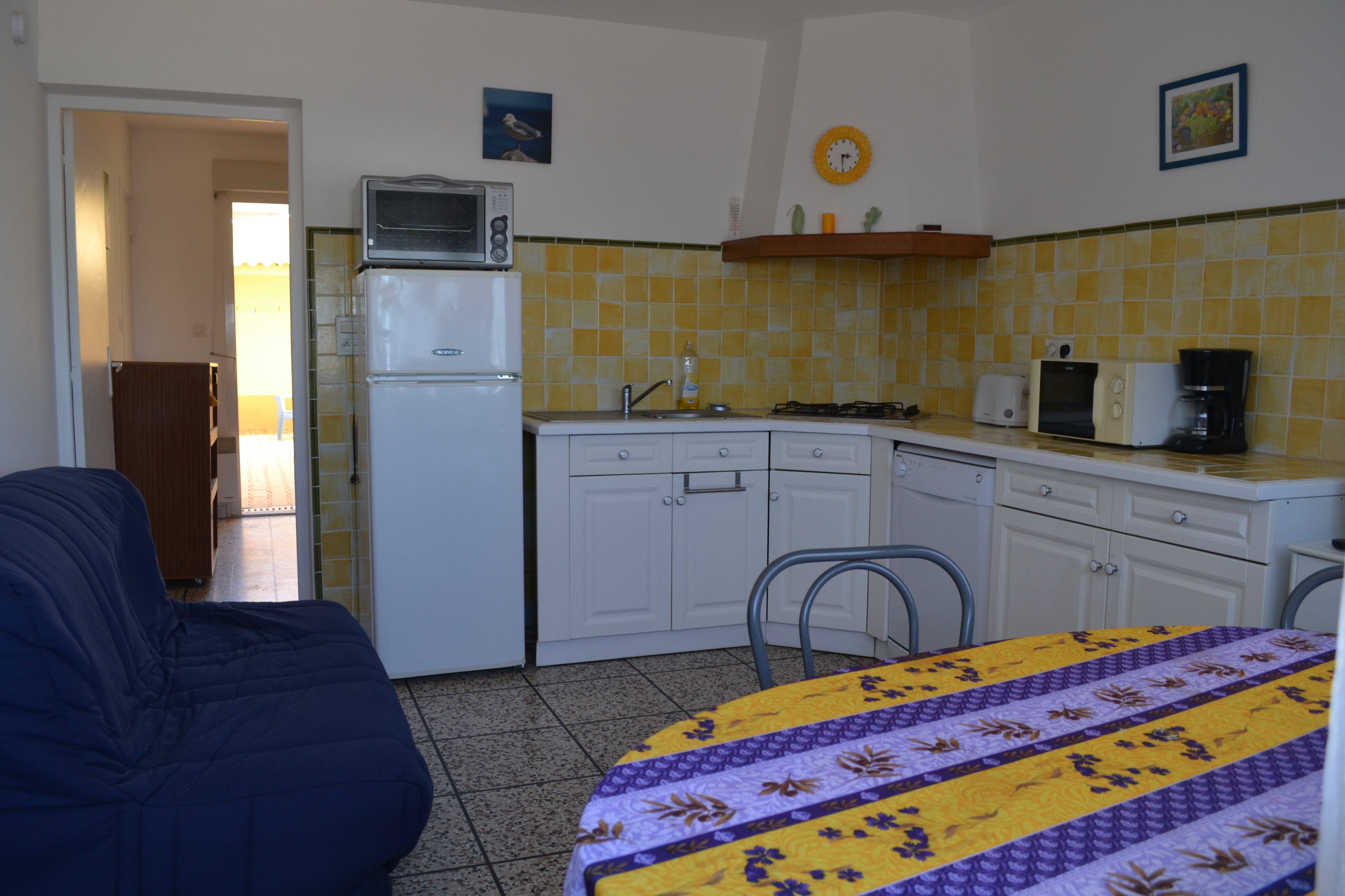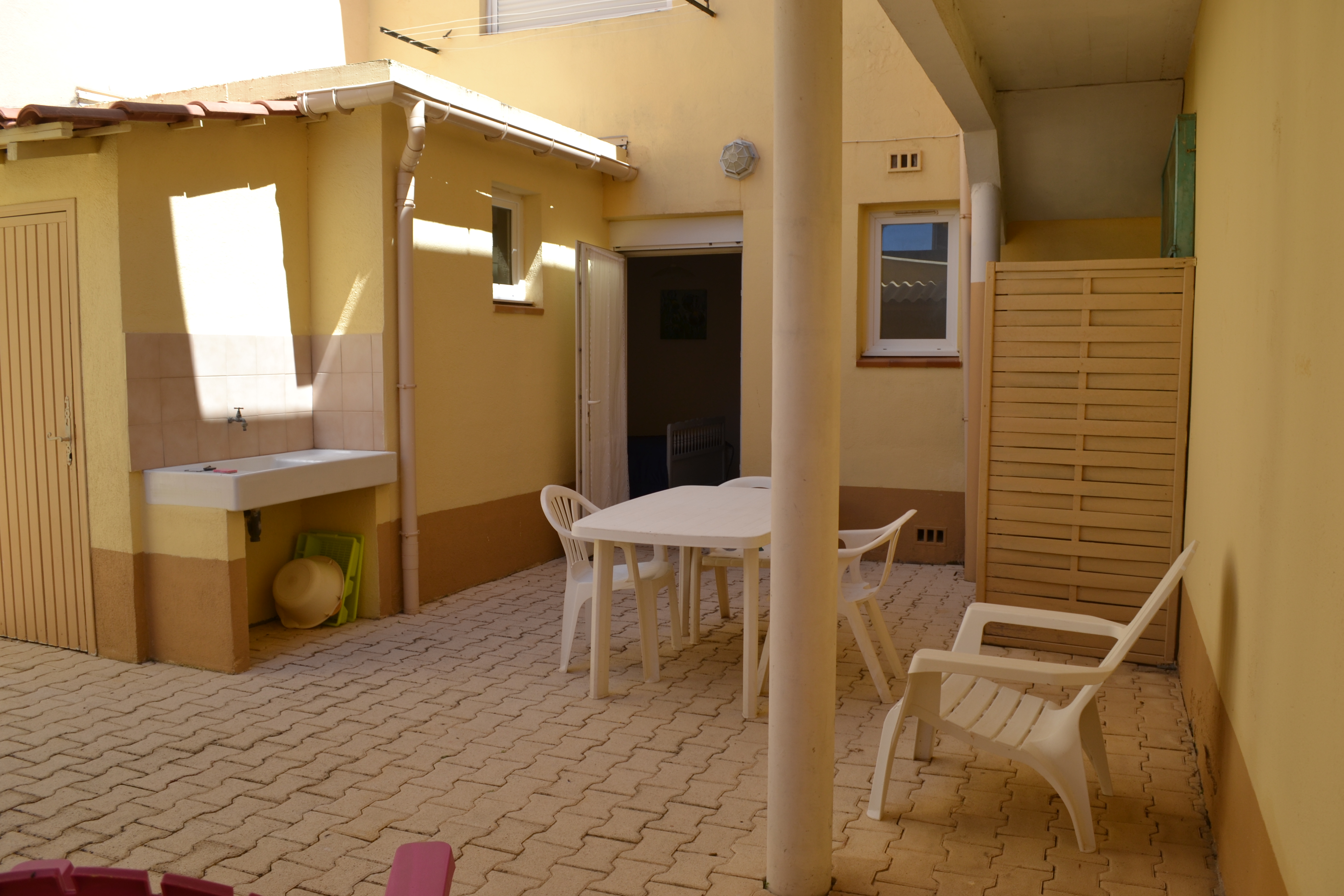 Appartement dans maison, F2, 25 m², RDC. À 50m du bord de mer, à 50m du centre-ville, sur le port. Parking privé à 400m, patio avec salon de jardin, barbecue. Lave linge privatif, lave vaisselle, four à micro-ondes, congélateur, chauffage, télévision. BZ séjour, lit 140 cm chambre1.