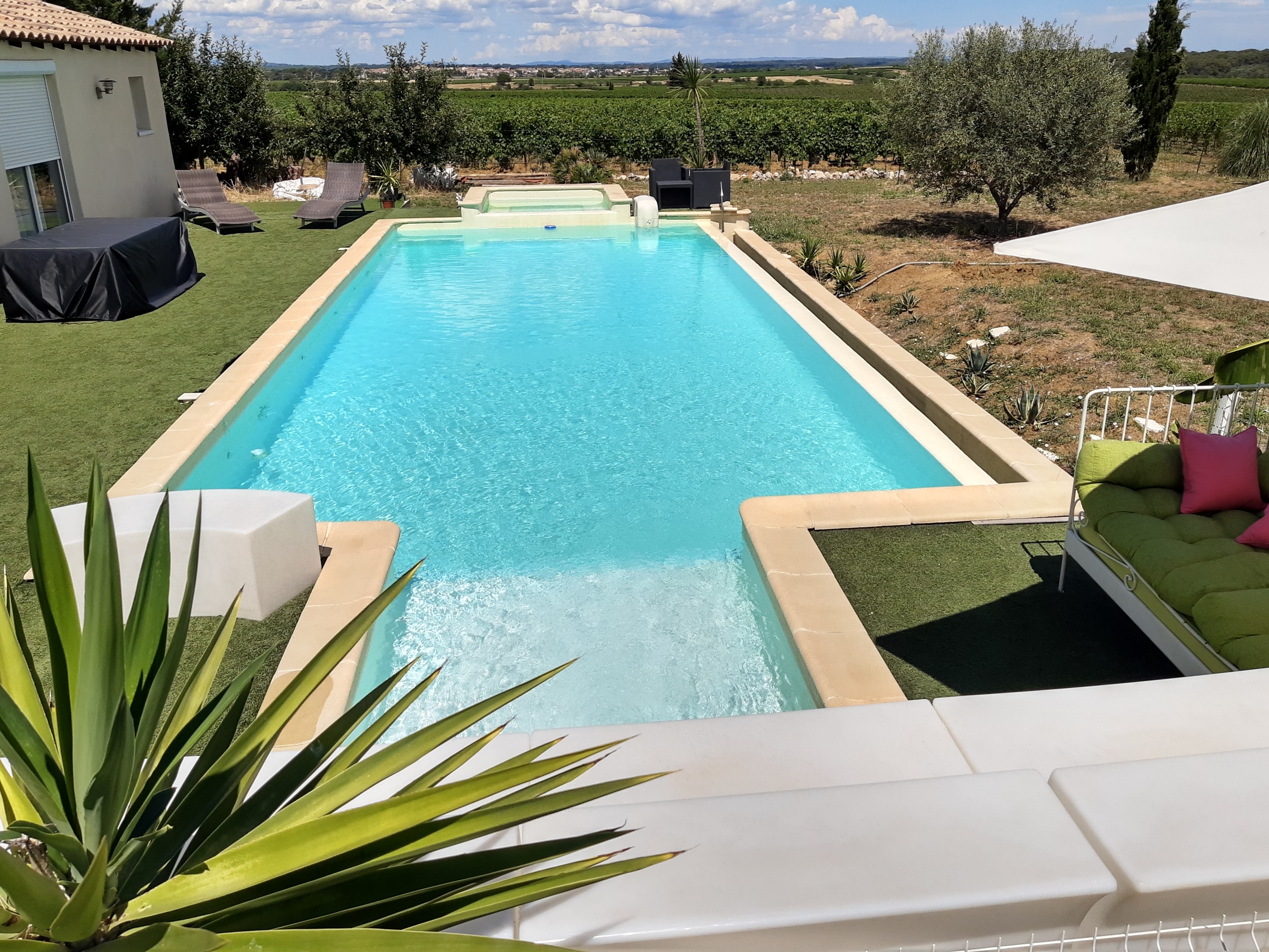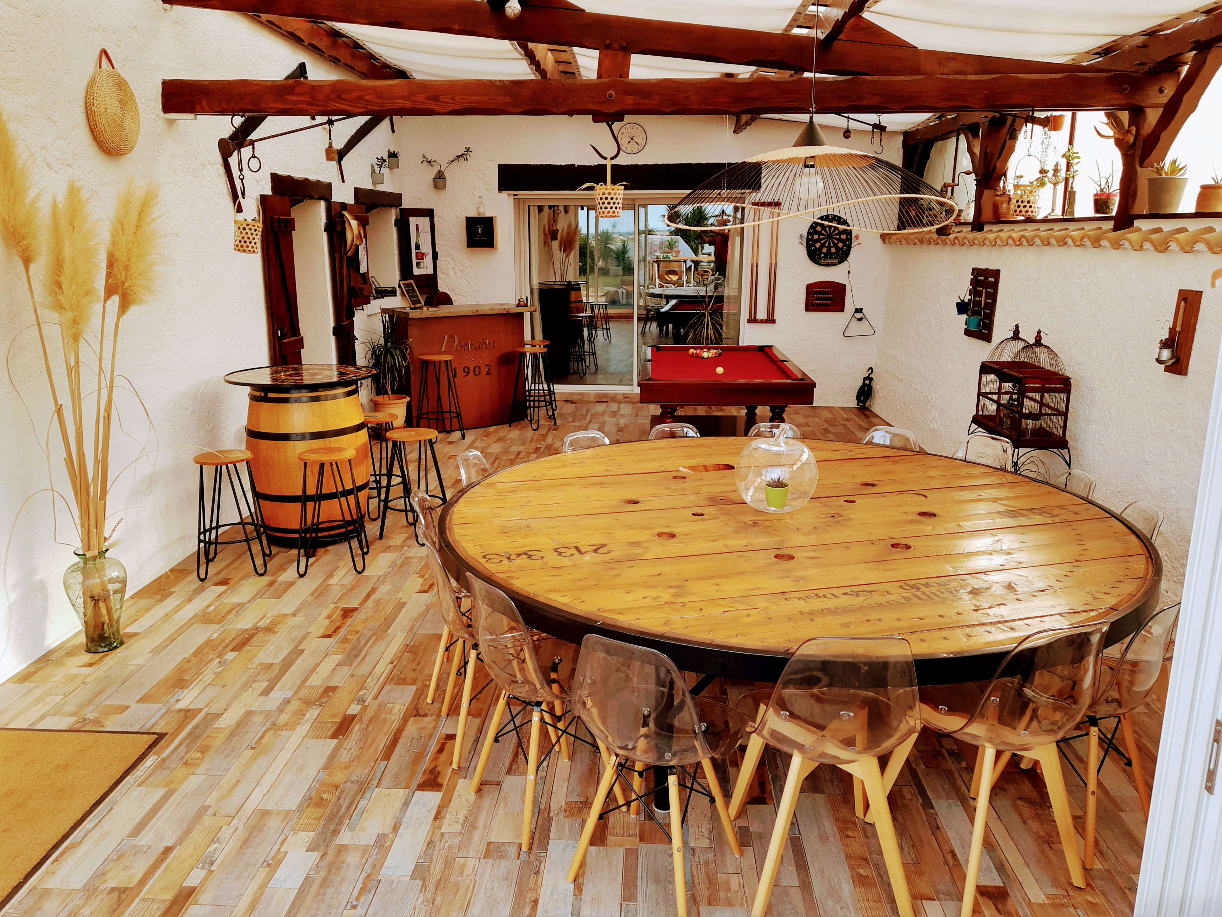 Grande maison dans domaine, 4 chambres doubles et 1 dortoir climatisés, 3 salles de bain, 4 wc, piscine privative, billard, boulodrome, grand jardin, vue dégagée, bbq, plancha, pour des séjours au calme en famille ou entre amis.