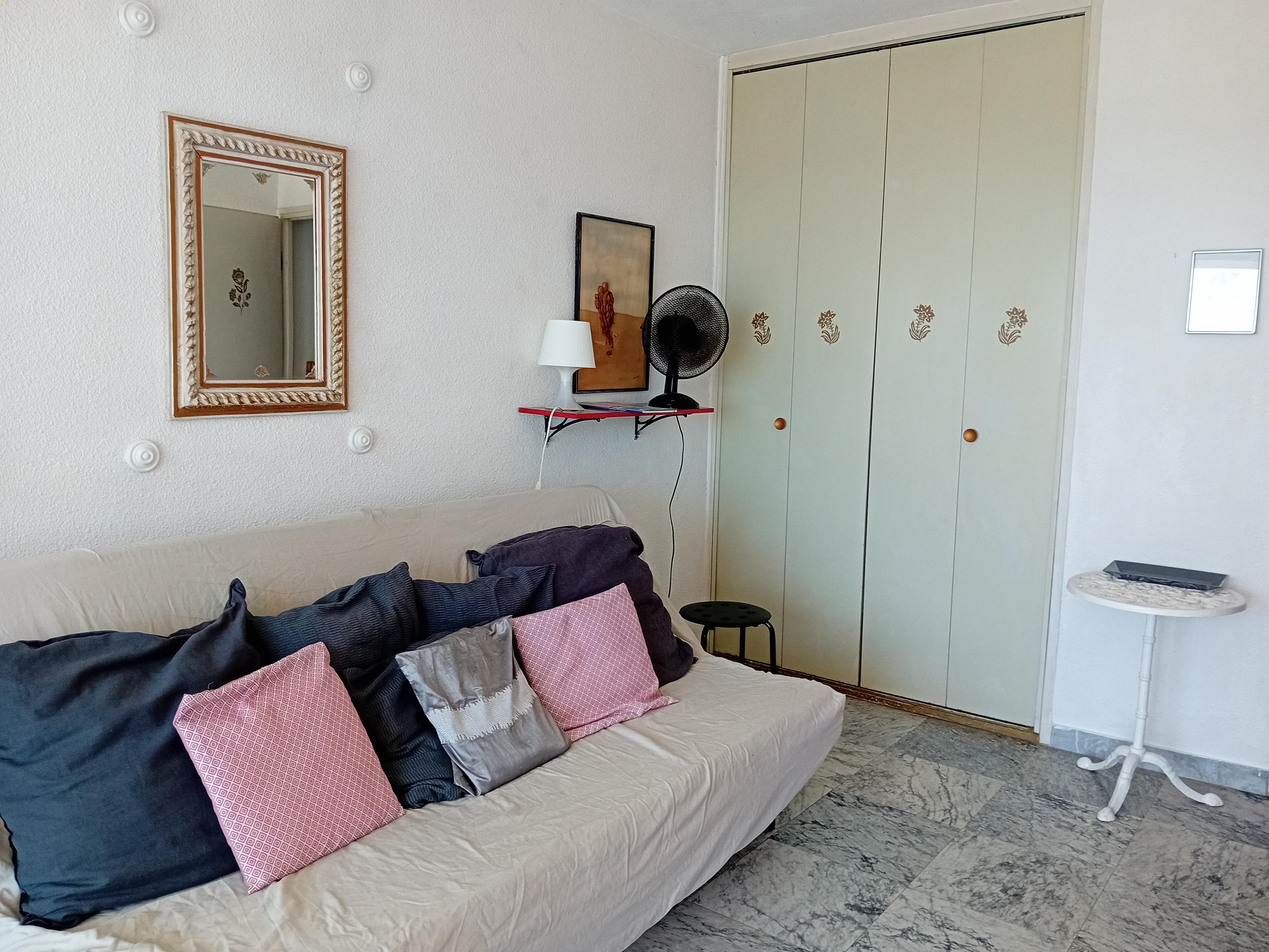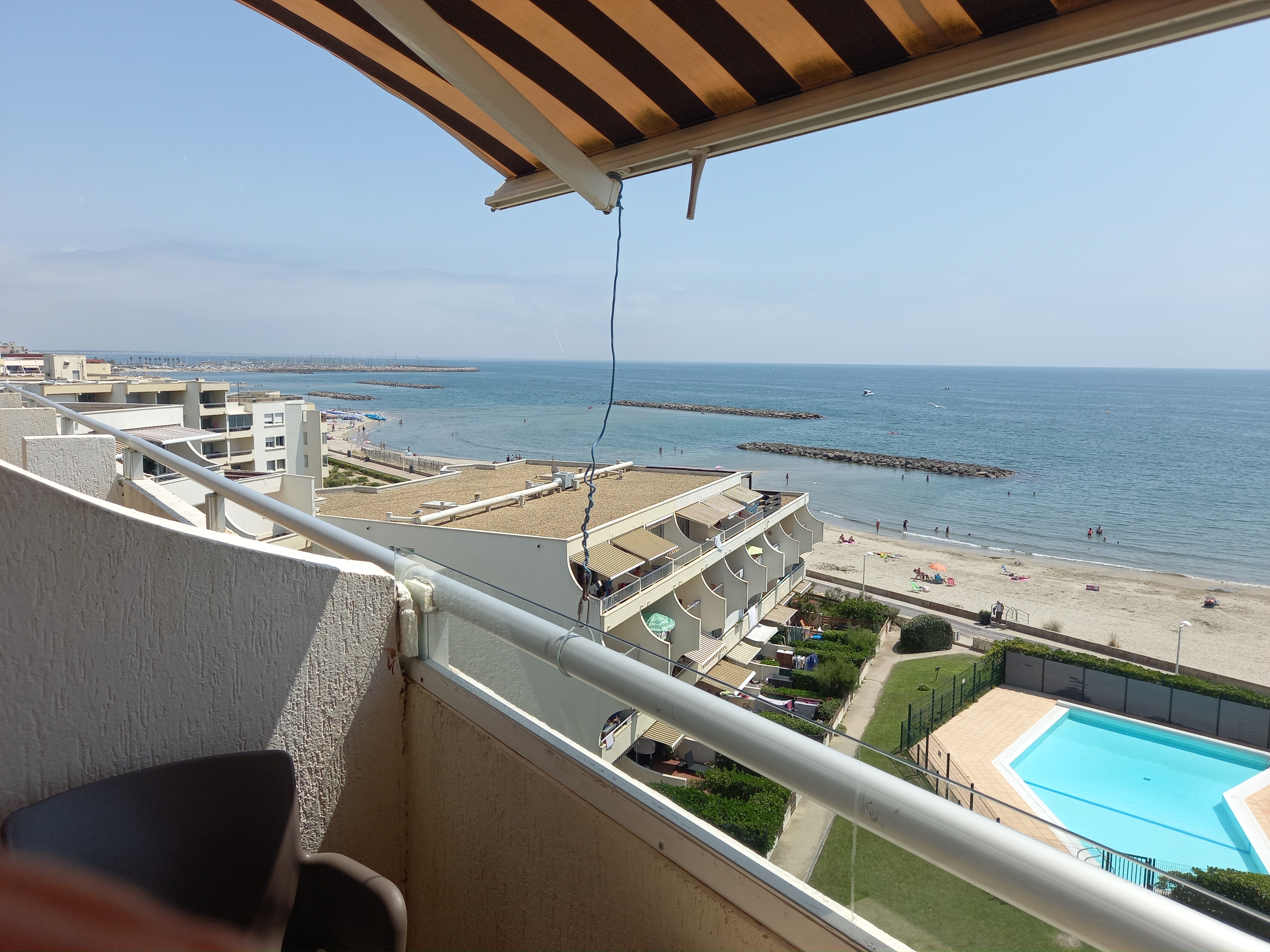 T2 cabine vue mer 1er ligne 180° au 6ème étage avec ascenseur. Accès direct à la plage. Résidence sécurisée avec piscine collective et gardien. Place de parking privée à disposition.