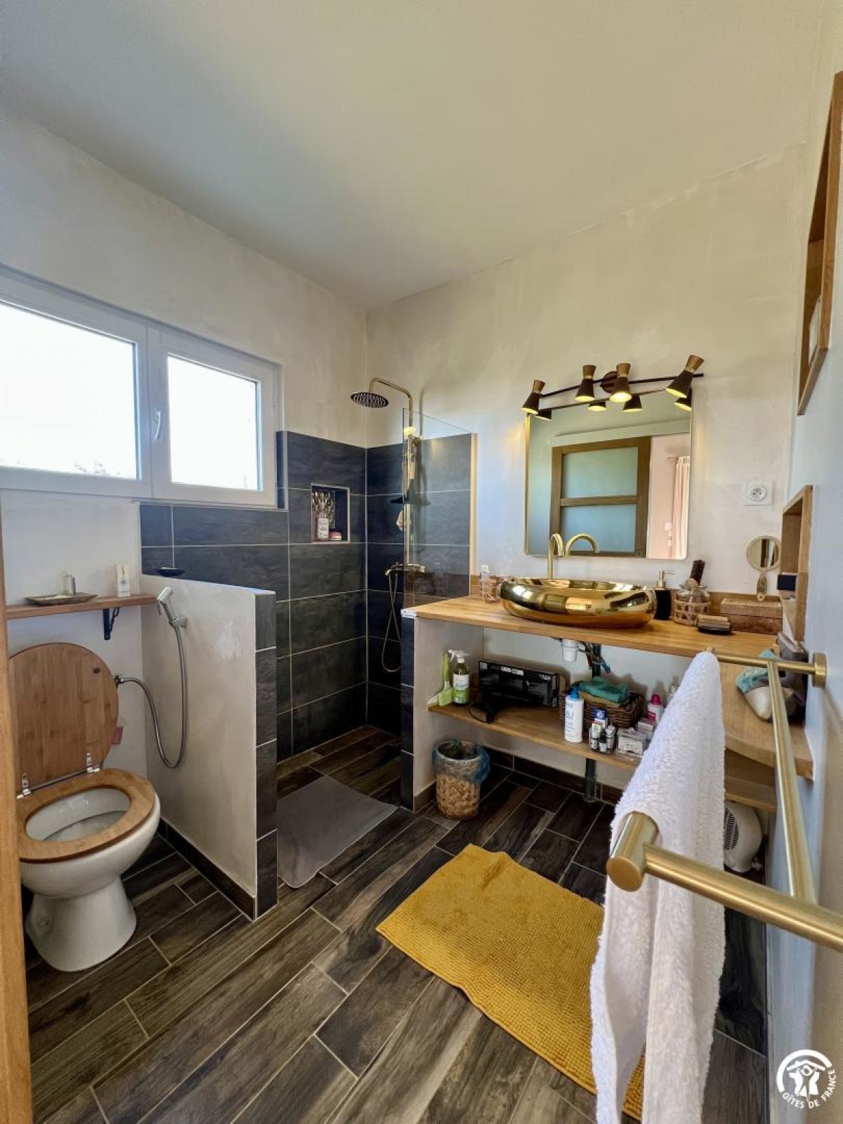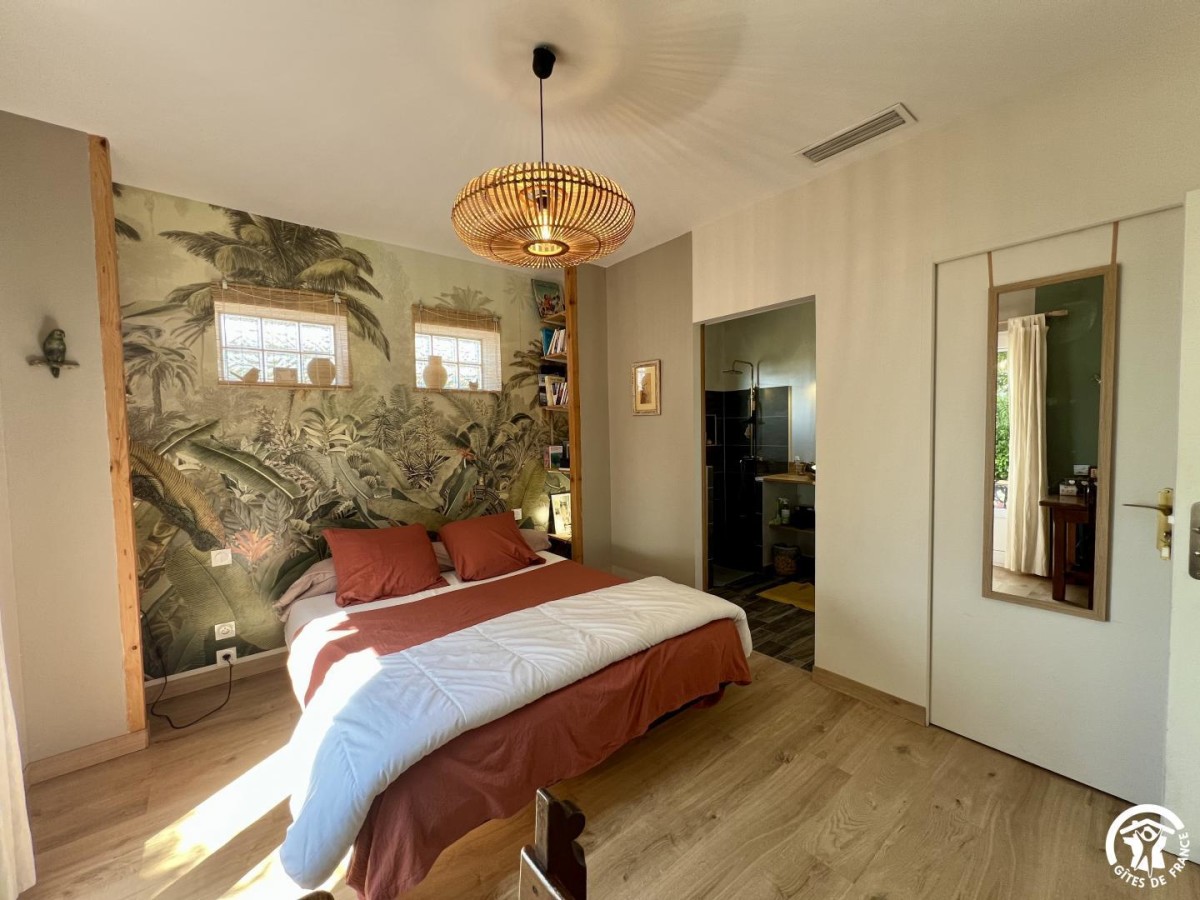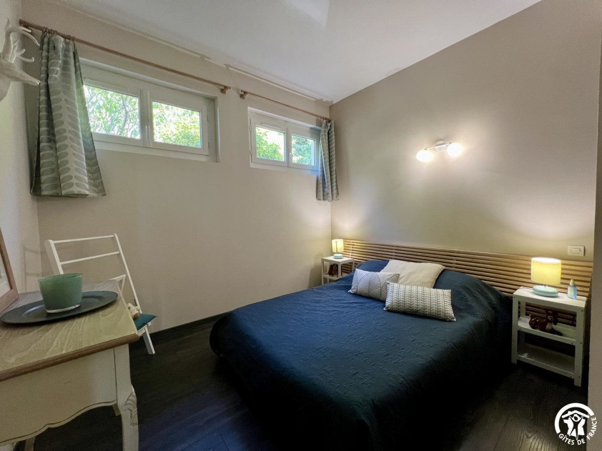 Au cœur de la Montagne Noire, à seulement 30 minutes de Carcassonne et de sa célèbre Cité médiévale, notre gîte vous accueille dans un cadre paisible et verdoyant. Profitez de la fraîcheur des forêts, des rivières et des lacs tout proches pour vous ressourcer. Nombreuses randonnées, VTT et balades au départ du hameau. Découvrez le lac du Lampy, le lac de Laprades aménagé et surveillé, la rigole classée à l’UNESCO et les châteaux cathares. Rafraichissez-vous en visitant le gouffre de Cabrespine, ou la grotte de Limousis. Flânez dans les villages de caractère : Montolieu, Saissac, Lastours… Partagez la vie locale autour des marchés et fêtes traditionnelles. Savourez les produits du terroir : cassoulet, miel, vins du Cabardès et du Minervois. Baignade, canoë, escalade ou simples siestes à l’ombre : à chacun son rythme ! Patrimoine, nature et convivialité sont au rendez-vous toute l’année. Sur place vous profiterez de la piscine commune du domaine (12×7) à 100 m du gîte, ouverte de début juin à mi-septembre, peu fréquentée et réservée aux propriétaires. Le Gîte en bout de hameau, vous permettra de bénéficier d’un panorama exceptionnel sur la plaine audoise, Carcassonne et la chaîne des Pyrénées: Entièrement de plain pied, vous profiterez d’un grand jardin privatif avec salon de jardin et barbecue. – Un espace buanderie (lave-linge, sèche-linge). – Un WC indépendant. – Un séjour avec un coin salon (canapés et TV) et une cuisine ouverte toute équipée, donnant sur la terrasse et le jardin. – Chambre 1: un lit 160x200cm avec salle d’eau-WC attenante. – Chambre 2: un lit 140x190cm. – Une salle d’eau indépendante. -Parking privatif devant le gîte. -Ensemble climatisé.