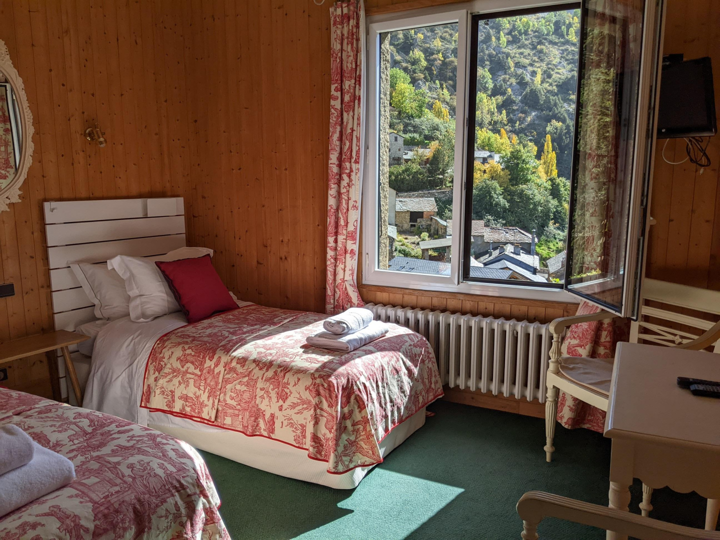 Le climat très ensoleillé laisse néanmoins la place aux nuits fraîches en été grâce à l’altitude (1450 m). La piscine (9,2 m x 3,5 m au max, P max 1,6 m) est sécurisée, située en retrait à 25 m et commune avec le gîte « Maître de Cabestany ». Elle est normalement ouverte de juin à septembre et l’eau est chauffée autour de 23°C. Sans vis à vis, de plain-pied, avec accès par deux marches, le gîte a un accès totalement indépendant au-dessus de la résidence des propriétaires. – Une grande pièce de vie avec cuisine, salle à manger et salon s’ouvre sur la terrasse privative, close et couverte de 15 m², avec une vue à 180 ° sur Llo et l’Espagne. – Les 4 chambres ont une vue surplombante sur le village : Chambre 1 : lit double 160 / salle d’eau avec WC. – Chambre 2 avec petite terrasse : lit double 160 / salle d’eau avec WC. – Chambre 3 : lit double 150 / salle d’eau avec WC – Chambre 4 : 2 lits simples 90 / salle d’eau avec WC. – Parking couvert, non fermé. – Le lieu est non fumeurs.