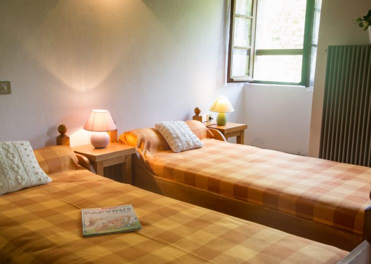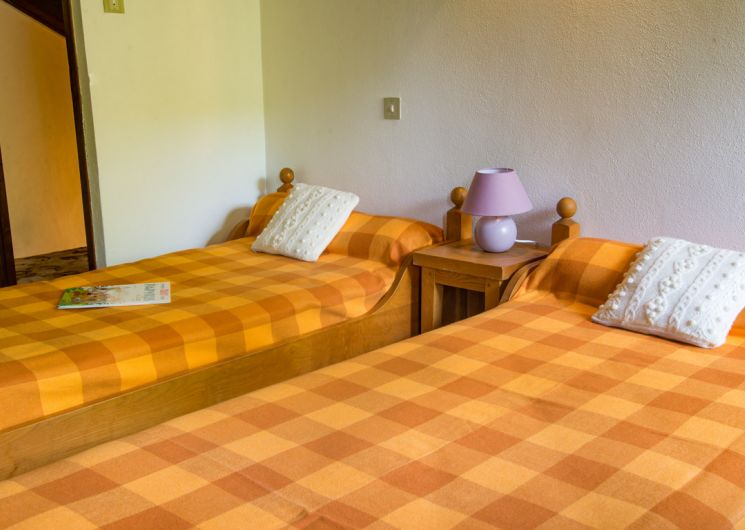 Gîte dans une maison située en bout de corps de bâtiments agricoles. Coin cuisine (micro-ondes, plaques vitro-céramique, lave-vaisselle, four électrique, frigo), coin séjour avec poêle à granulés et coin salon avec téléviseur, WC. A l’étage : 2 chambres, téléviseur dans une des 2 chambres (1 lit 2 places et 2 lits 1 place), . Salle d’eau, lave-linge, chauffage central, cheminée, terrain, salon de jardin et barbecue.