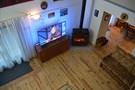 – salon avec plafond cathédrale, équipé de deux canapés et de deux fauteuils, tv, poêle/insert à bois 70 cm