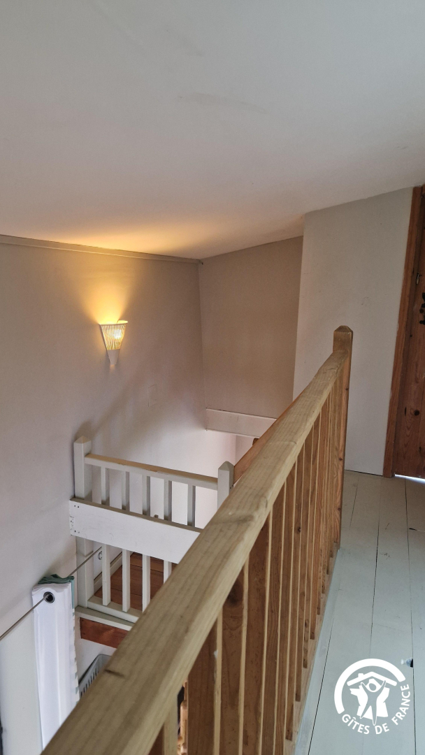 – 2 chambres mansardées (9.50m² + 9m²), chacune avec deux lits en 90X180cm. Dans une chambre, les lits sont jumelables pouvant offir un lit double supplémentaire.