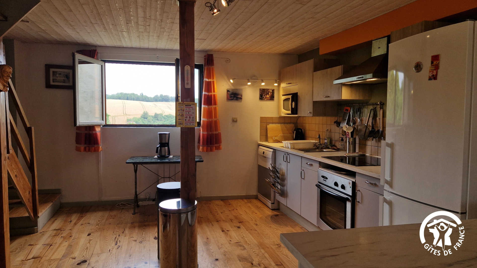– cuisine ouverte toute équipée : plaque induction, lave-vaisselle, four, micro-ondes, réfrigérateur congélateur, aspirateur, robot de cuisine, cafetière, bouilloire, presse agrumes, grille-pain…