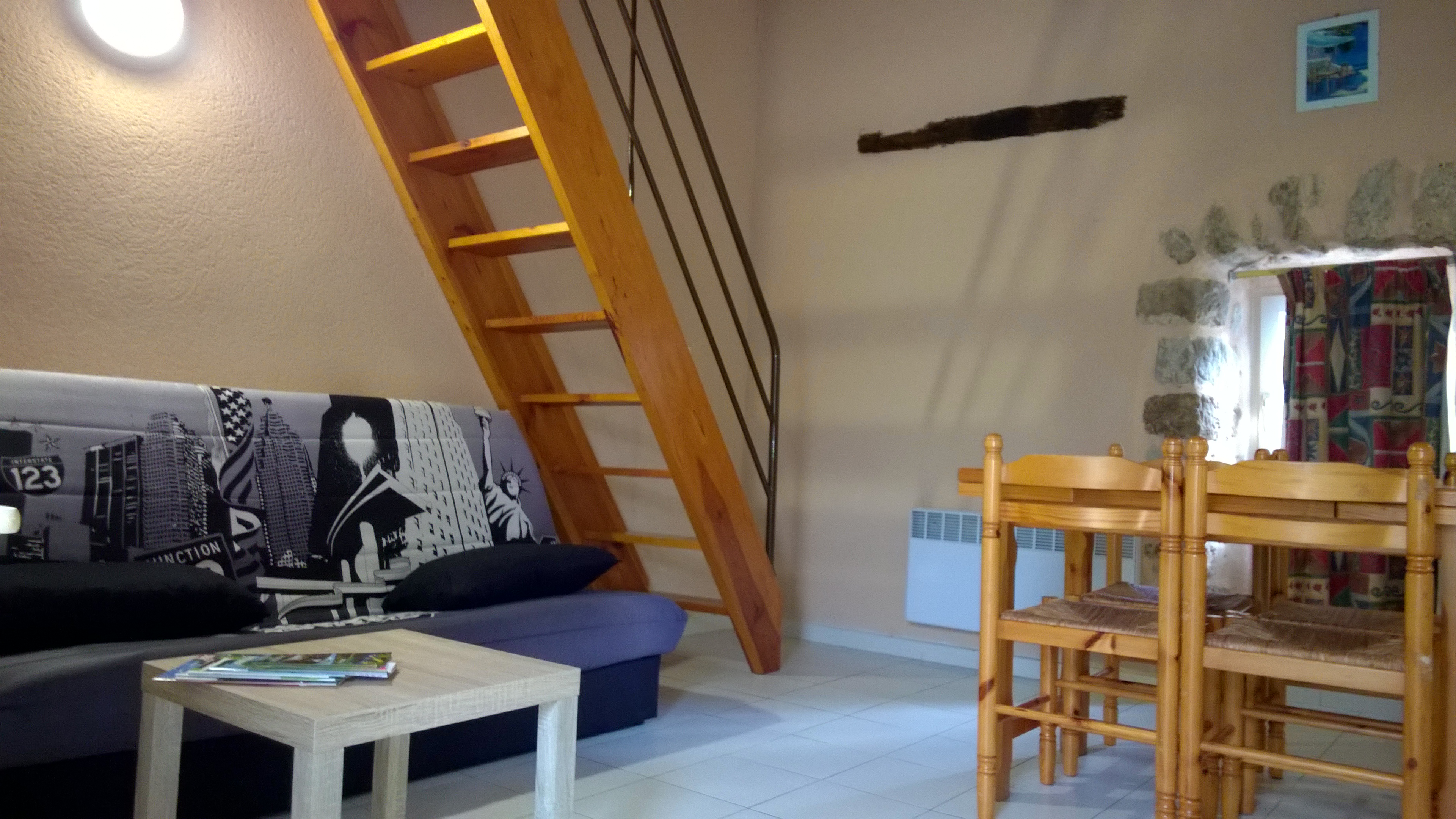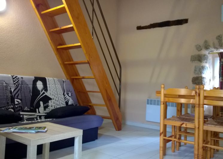 Gîte de 48 m² dans maison rénovée. 2 ème étage, au centre-village, à 500 m du bord du lac, à 11 km d’un établissement thermal.