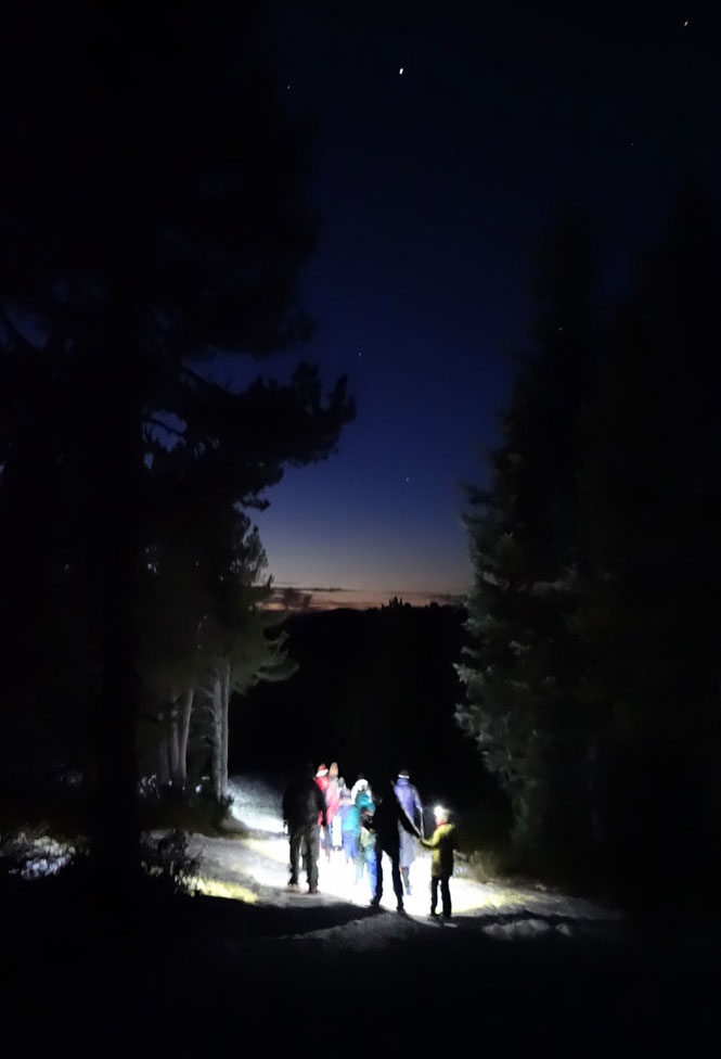 une nocturne aux airs de Grand nord, en raquettes à la nuit tombée, dans la forêt du plateau de Beille, pour rejoindre la cabane pastorale de Piparlan, avec collation hivernale à l’arrivée !