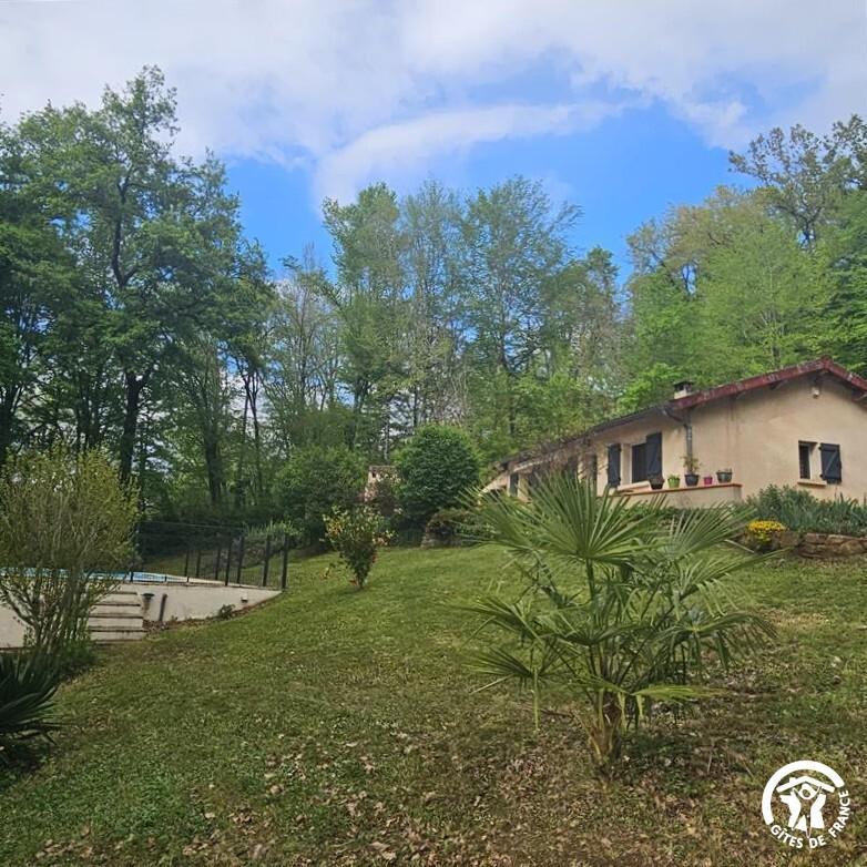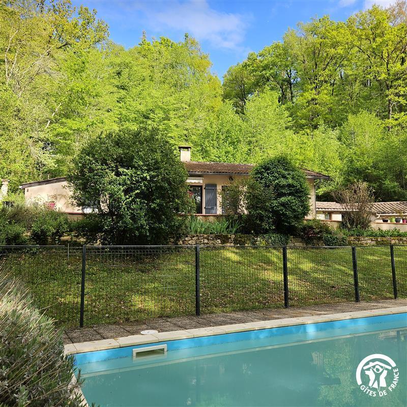 Très joli cadre, gîte en bord en bord d’Aveyron, collé à la colline, avec piscine privative, clôturée (6x5m)