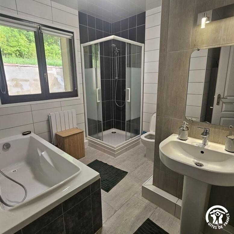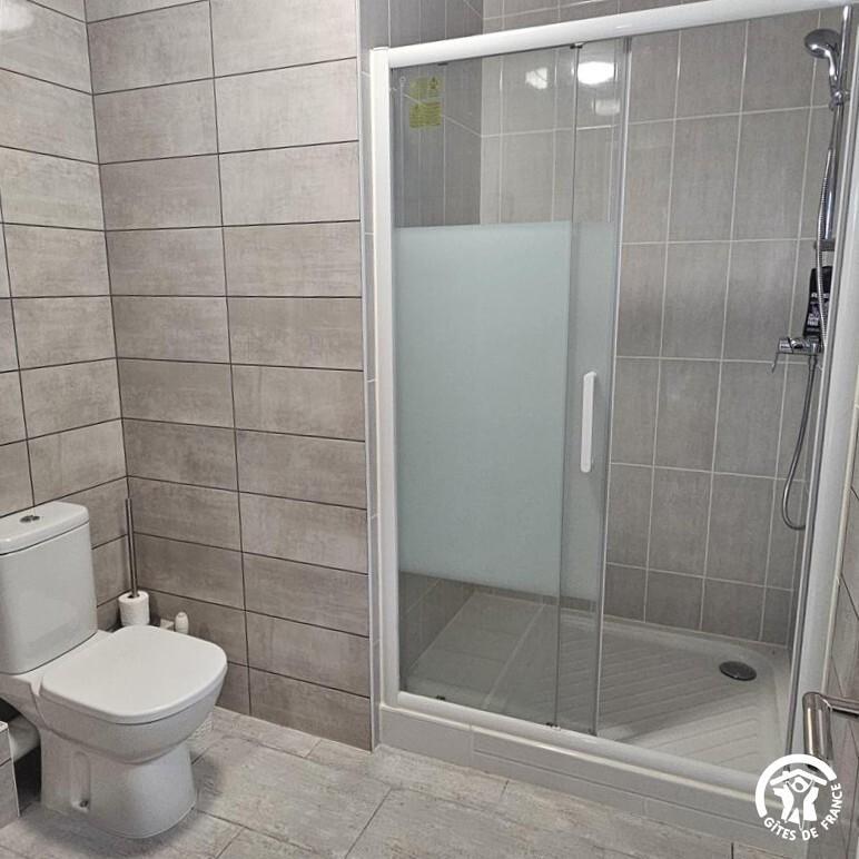 * chambre avec un lit double, lit 140×190, salle d’eau privative (douche, vasque, wc)