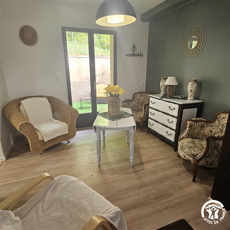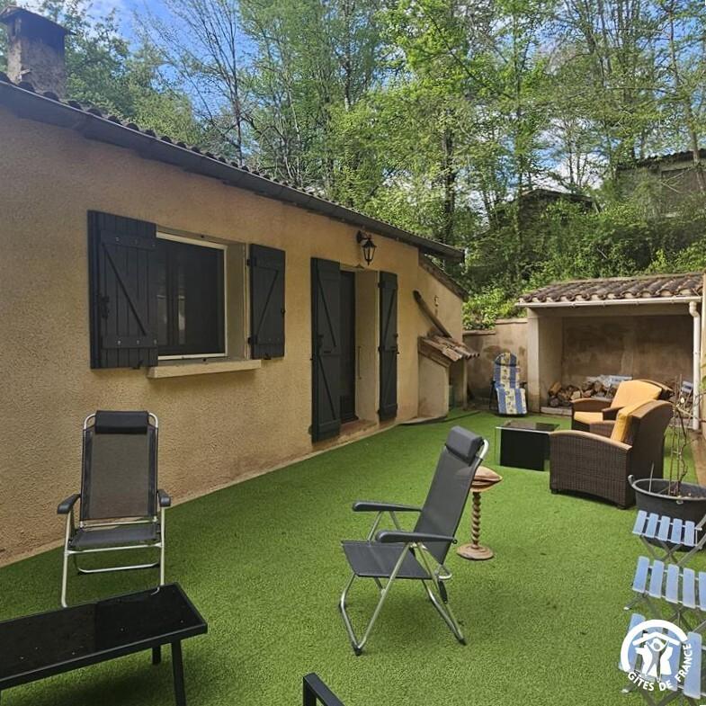 Gîte de plain-pied, fonctionnel et facile à vivre, avec une terrasse d’un côté donnant sur la piscine et l’Aveyron, et une autre terrasse à l’arrière. Grand jardin, qui se prolonge au delà de la petite route jusqu’aux berges de l’Aveyron. Salon de jardin, transats.