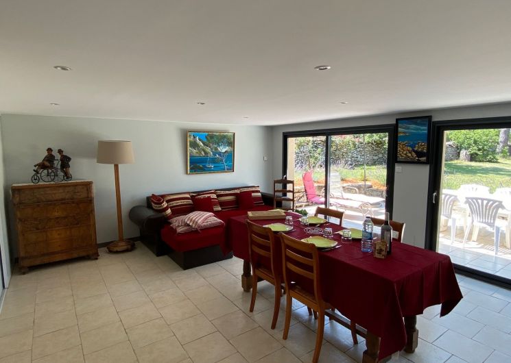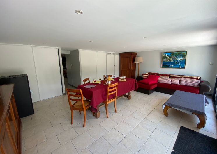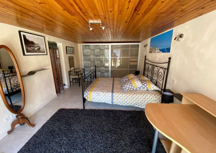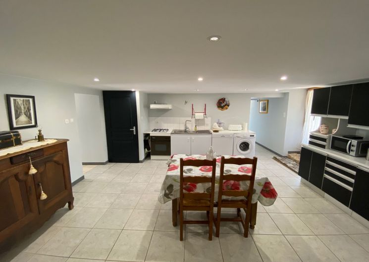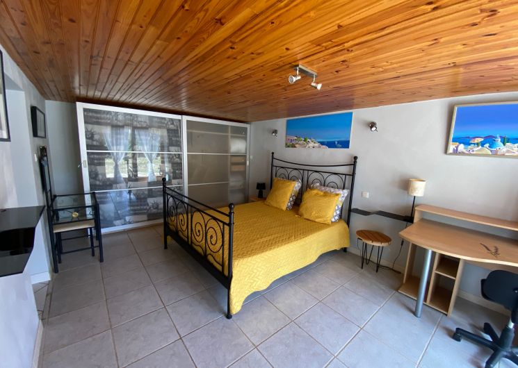 Accès indépendant, ce logement comprend : une cuisine aménagée (micro ondes, réfrigérateur, congélateur), une salle à manger avec salon (canapé d’angle, table, chaises) donnant sur une terrasse (salon de jardin, chaises longues, barbecue, parasol). Une chambre (1 lit 160 électrique, 1 lit de bébé). Un wc indépendant. Une chambre ( 1 lit 160) avec accès à une salle d’eau. Internet par wifi. Draps linge de maison et linge de toilette fourni . Piscine 4×10 fond plat. 4 transats, fauteuils et terrasse aménagée avec salon de jardin en bois. Piscine partagée avec les propriétaires.