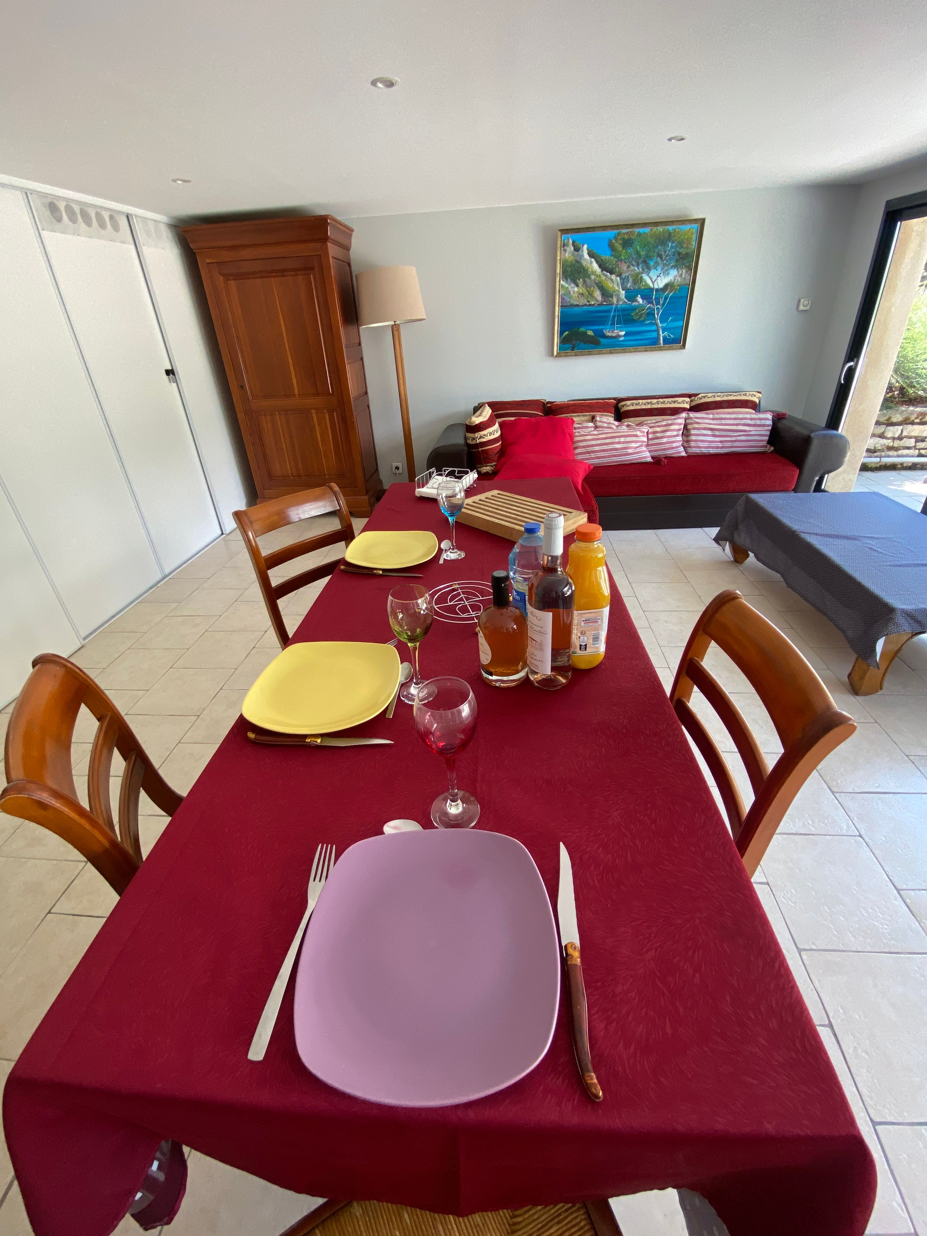 Accès indépendant, ce logement comprend : une cuisine aménagée (micro ondes, réfrigérateur, congélateur), une salle à manger avec salon (canapé d’angle, table, chaises) donnant sur une terrasse (salon de jardin, chaises longues, barbecue, parasol). Une chambre (1 lit 160 électrique, 1 lit de bébé). Un wc indépendant. Une chambre ( 1 lit 160) avec accès à une salle d’eau. Internet par wifi. Draps linge de maison et linge de toilette fourni . Piscine 4×10 fond plat. 4 transats, fauteuils et terrasse aménagée avec salon de jardin en bois. Piscine partagée avec les propriétaires.