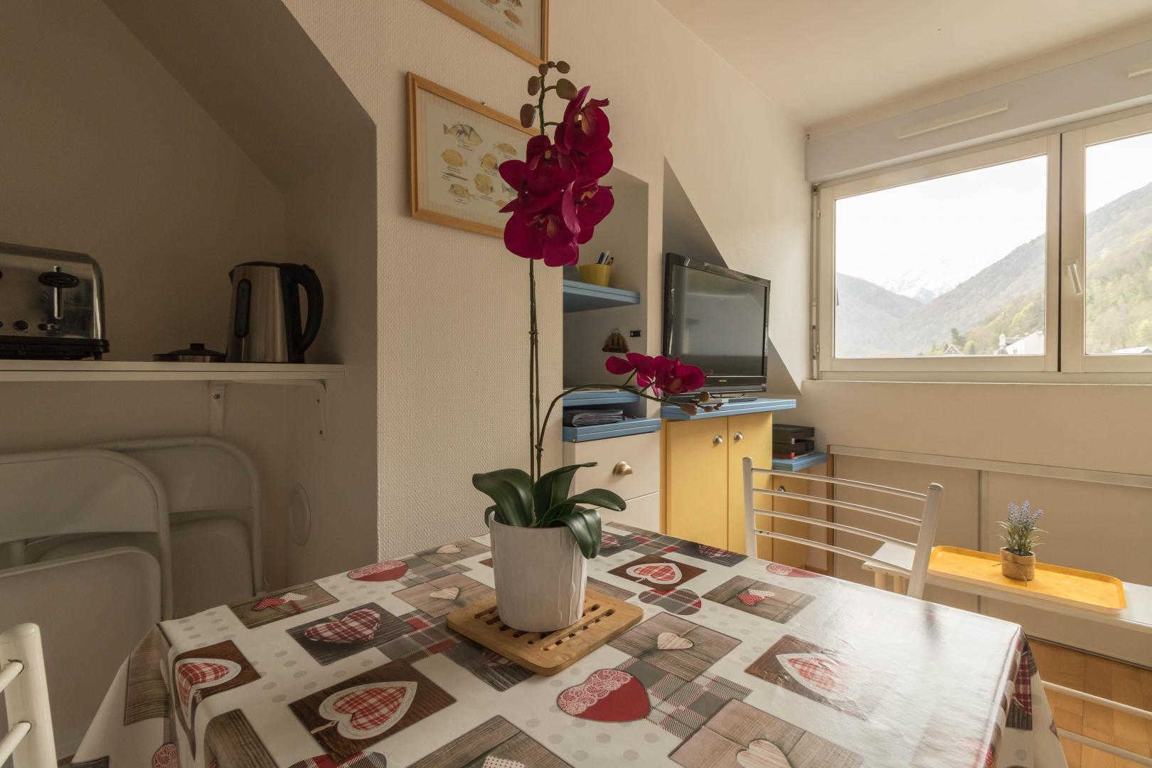 Appartement T2 pour un séjour en couple à 200 mètres du télécabine de la station de ski de Luchon-Superbagnères, idéalement situé par rapport aux commerces et animations, thermes et au téléporté de la station de ski de Superbagnères ! Vous bénéficierez d’une vue magnifique sur la montagne pyrénéenne, et le Vénasque.