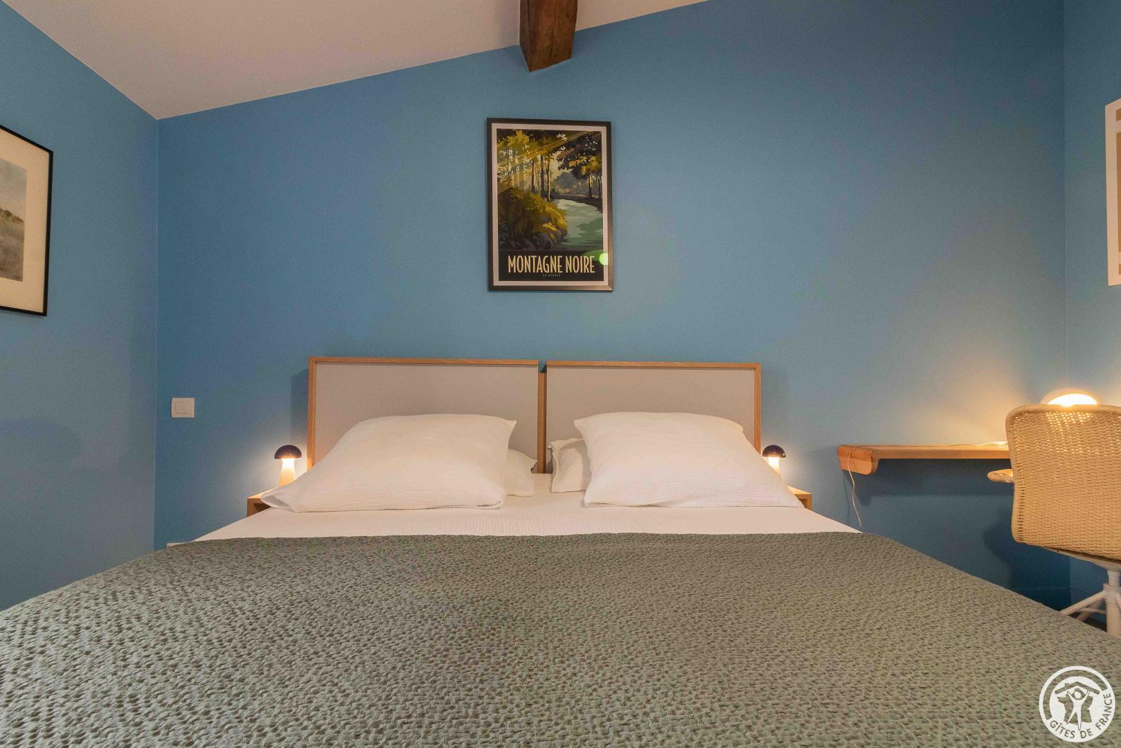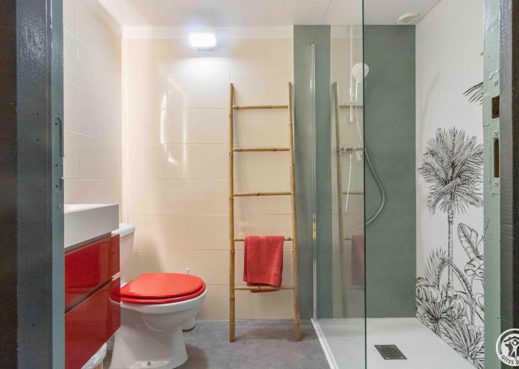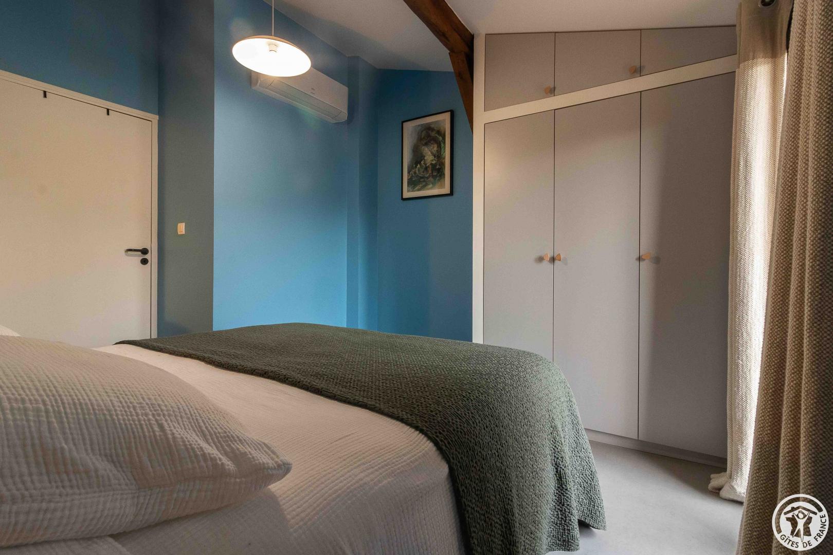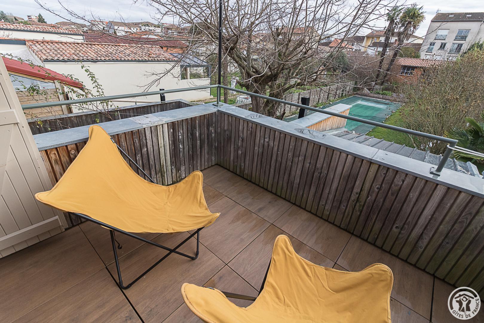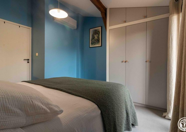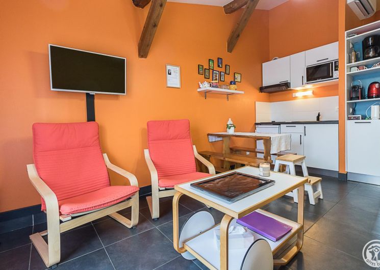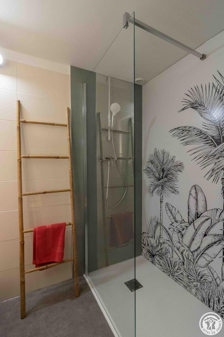 Le gîte est situé à l’étage de la maison des propriétaires, avec un accès indépendant : séjour (canapé, fauteuils, table basse, télévision, jeux, bibliothèque) et coin-cuisine (réfrigérateur, micro-ondes/grill, cafetière, bouilloire). Un dégagement dessert la salle d’eau/WC et la chambre (2 lits pour 1 personne en 80x200cm, jumelables, bureau) qui ouvre sur une petite terrasse privée, dominant le jardin (transats). Un escalier permet de descendre directement dans le jardin. Climatisation réversible.