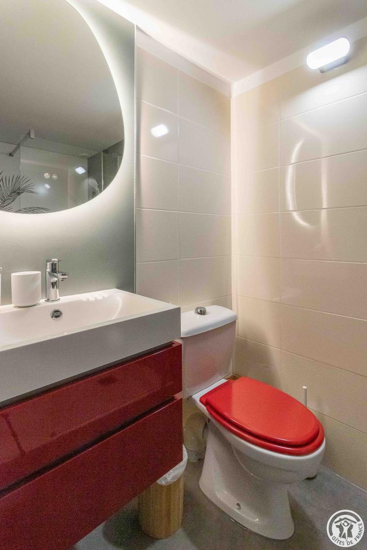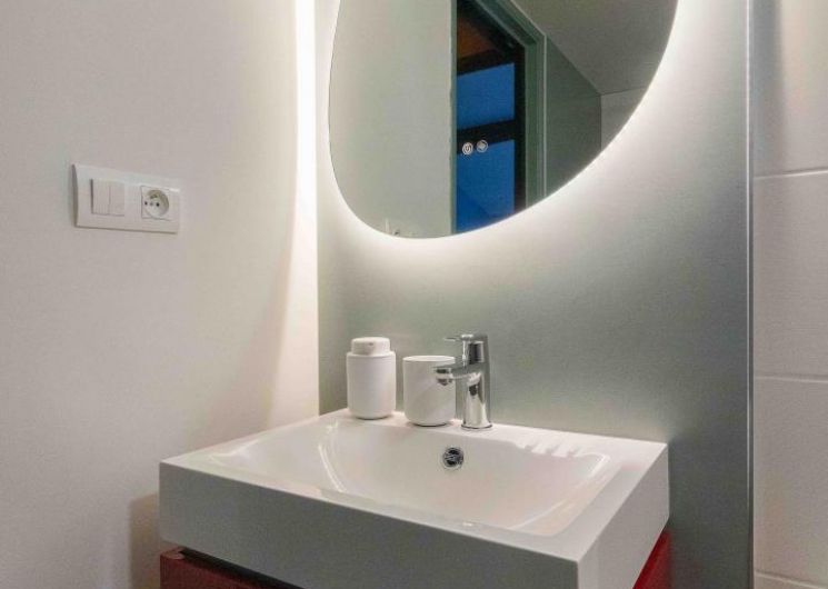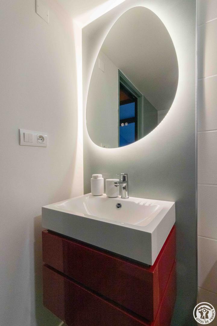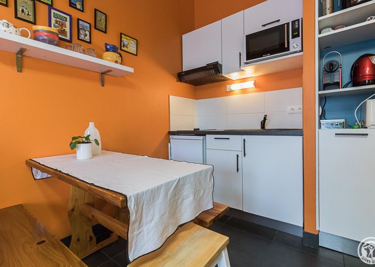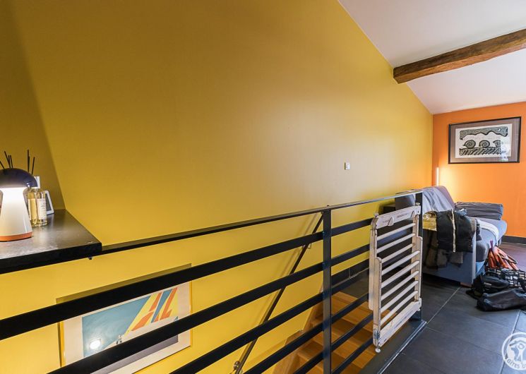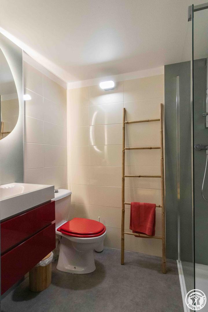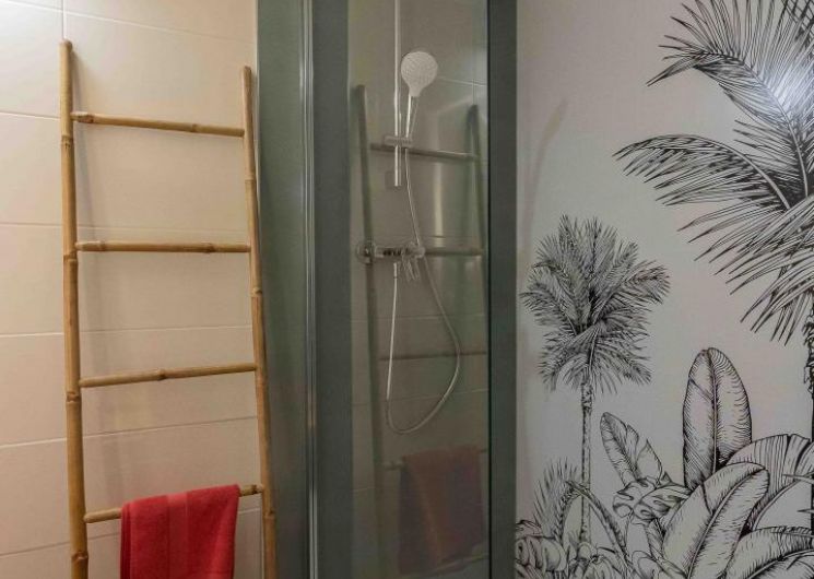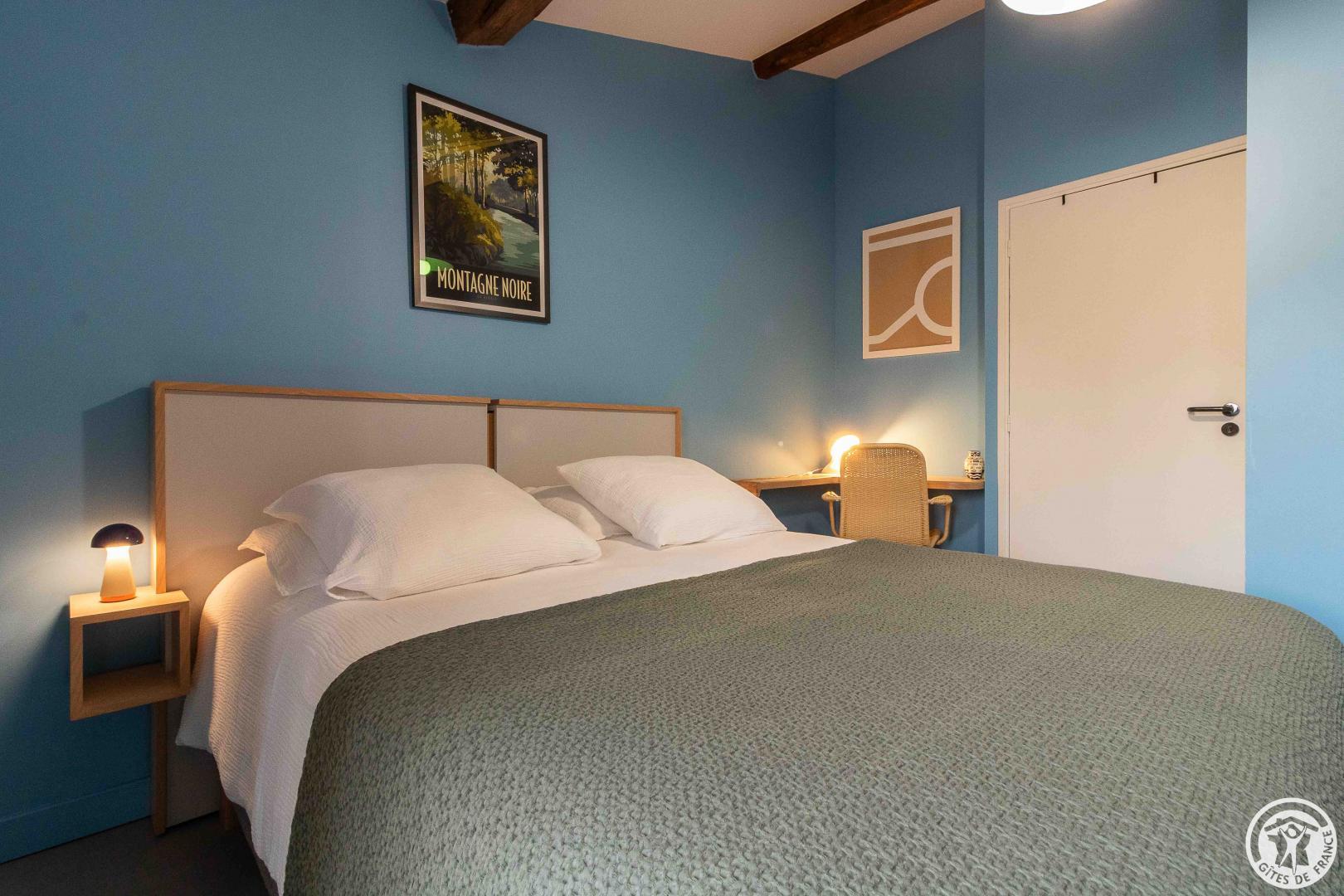 Le gîte est situé à l’étage de la maison des propriétaires, avec un accès indépendant : séjour (canapé, fauteuils, table basse, télévision, jeux, bibliothèque) et coin-cuisine (réfrigérateur, micro-ondes/grill, cafetière, bouilloire). Un dégagement dessert la salle d’eau/WC et la chambre (2 lits pour 1 personne en 80x200cm, jumelables, bureau) qui ouvre sur une petite terrasse privée, dominant le jardin (transats). Un escalier permet de descendre directement dans le jardin. Climatisation réversible.