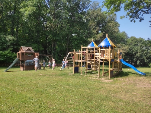 Ce gîte au RDC d’une maison de caractère propose une grande pièce de vie ouverte sur une terrasse qui donne sur la cour principale, deux chambres et une salle de bain. De plain pied, il est pratique pour les familles avec enfants en bas âge. Piscine chauffée de 15 m de long, pataugeoire, espace détente avec bar, terrain de pétanque, vaste jardin clôturé avec plusieurs jeux pour les enfants (toboggans, balançoire, trampoline), animaux de la ferme. Sont compris dans le tarif : lits faits à l’arrivée, linge de maison, linge de toilette, serviettes de piscine, taxe de séjour, équipements bébé pour chaque gîte, livraison du pain, buanderie partagée.