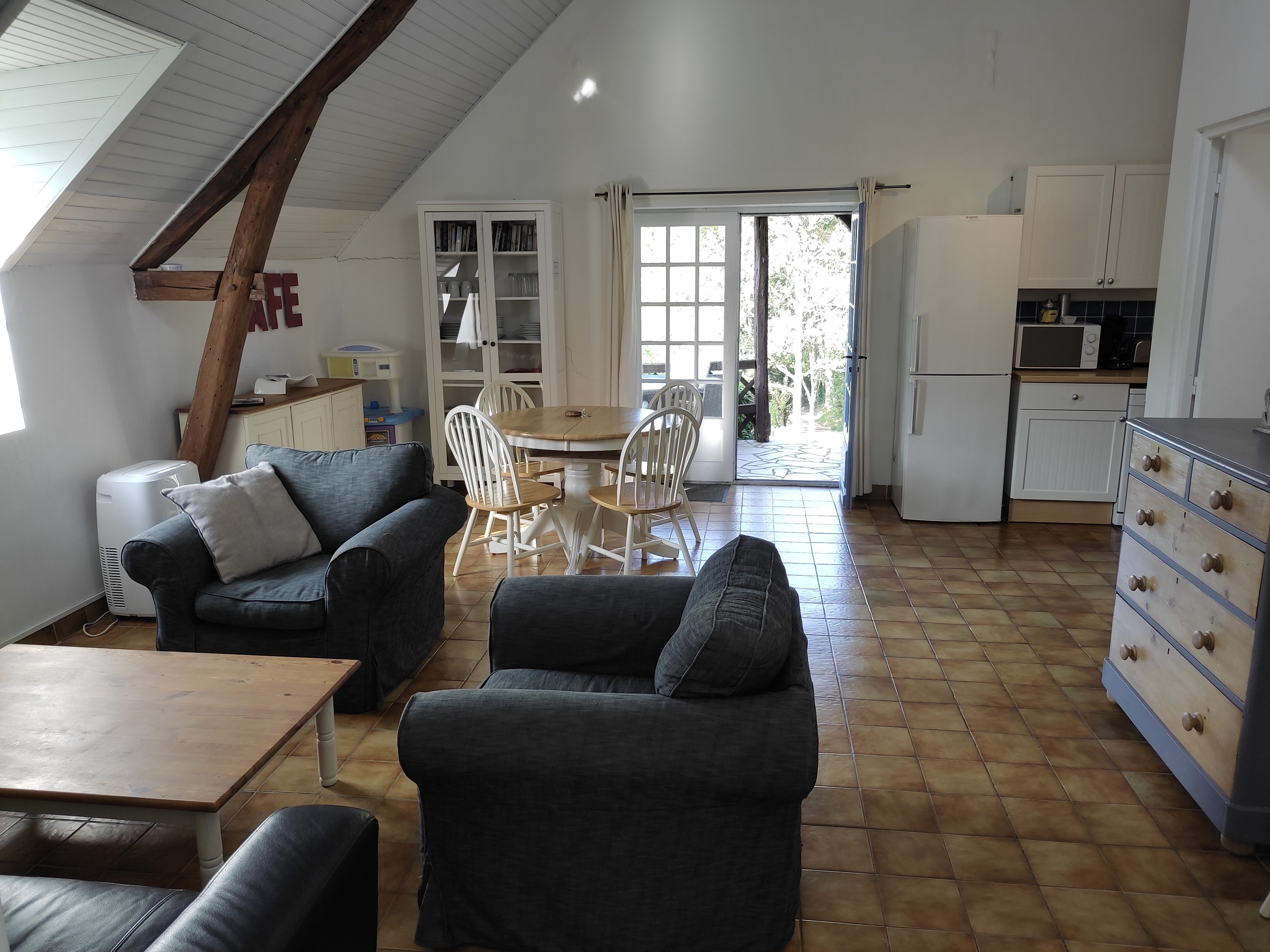 Situé au premier étage d’un bâtiment de caractère de 4 logements mitoyens, le gîte est composé d’une grande pièce à vivre sous les toits avec cuisine ouverte sur le séjour. 3 chambres : 1 lit double, 2 lits simples et une chambre avec lit simple ou lit bébé. La terrasse abritée permet de profiter de l’extérieur à toute heure jusqu’au soleil couchant, et de cet écrin de verdure calme et reposant. Piscine chauffée, espace détente avec bar, terrain de pétanque, vaste jardin clôturé avec aires de jeux pour les enfants (toboggans, balançoire, trampoline). Sont compris dans le tarif : lits faits à l’arrivée, linge de maison, linge de toilette, serviettes de piscine, taxe de séjour, équipements bébé pour chaque gîte, livraison du pain, buanderie partagée.